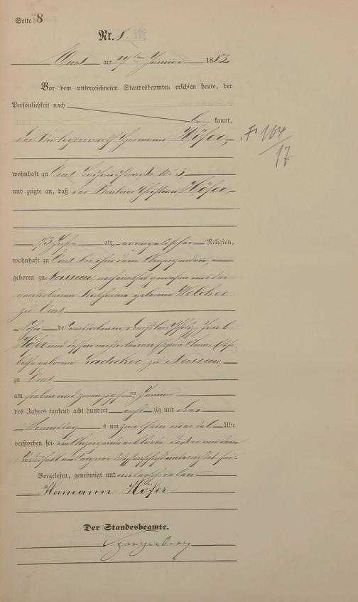 Sterberegister 1883