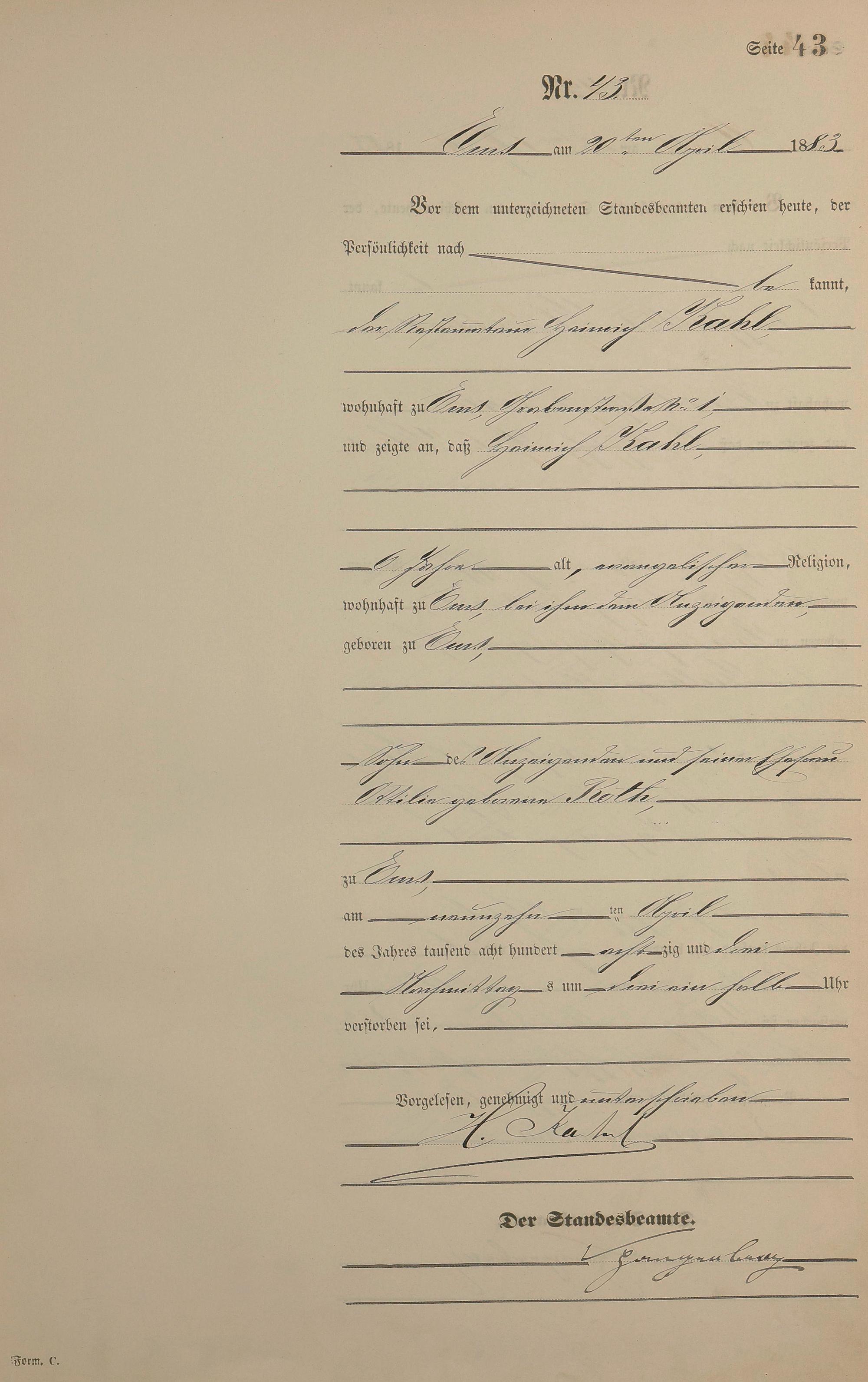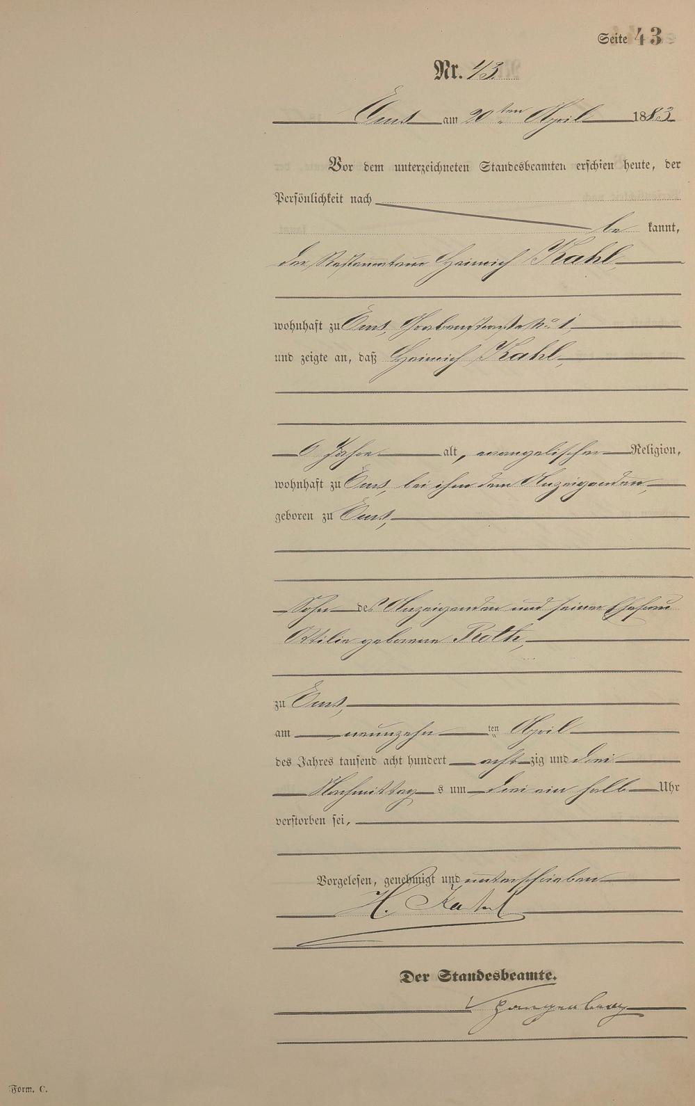 Sterberegister 1883
