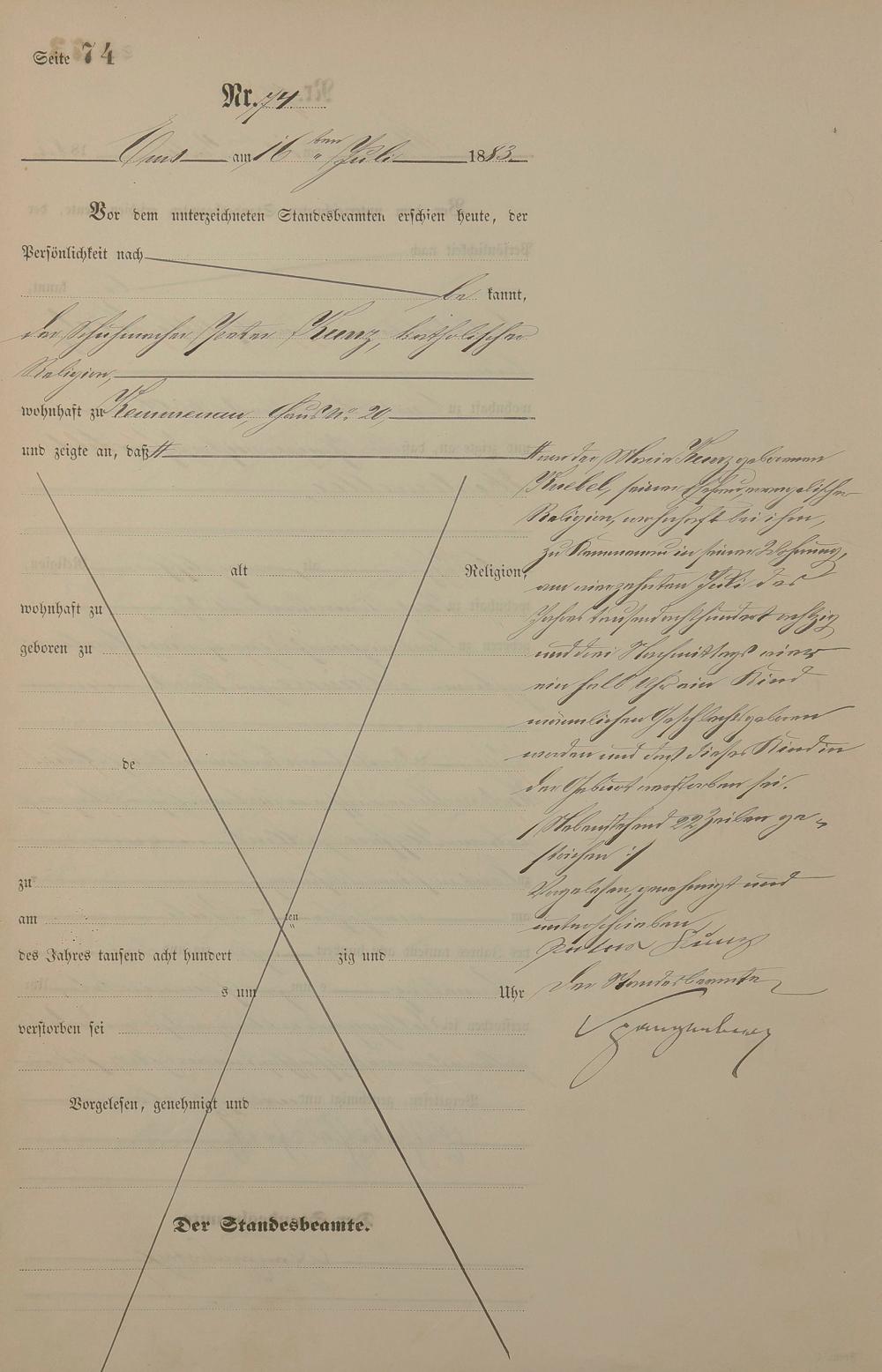 Sterberegister 1883