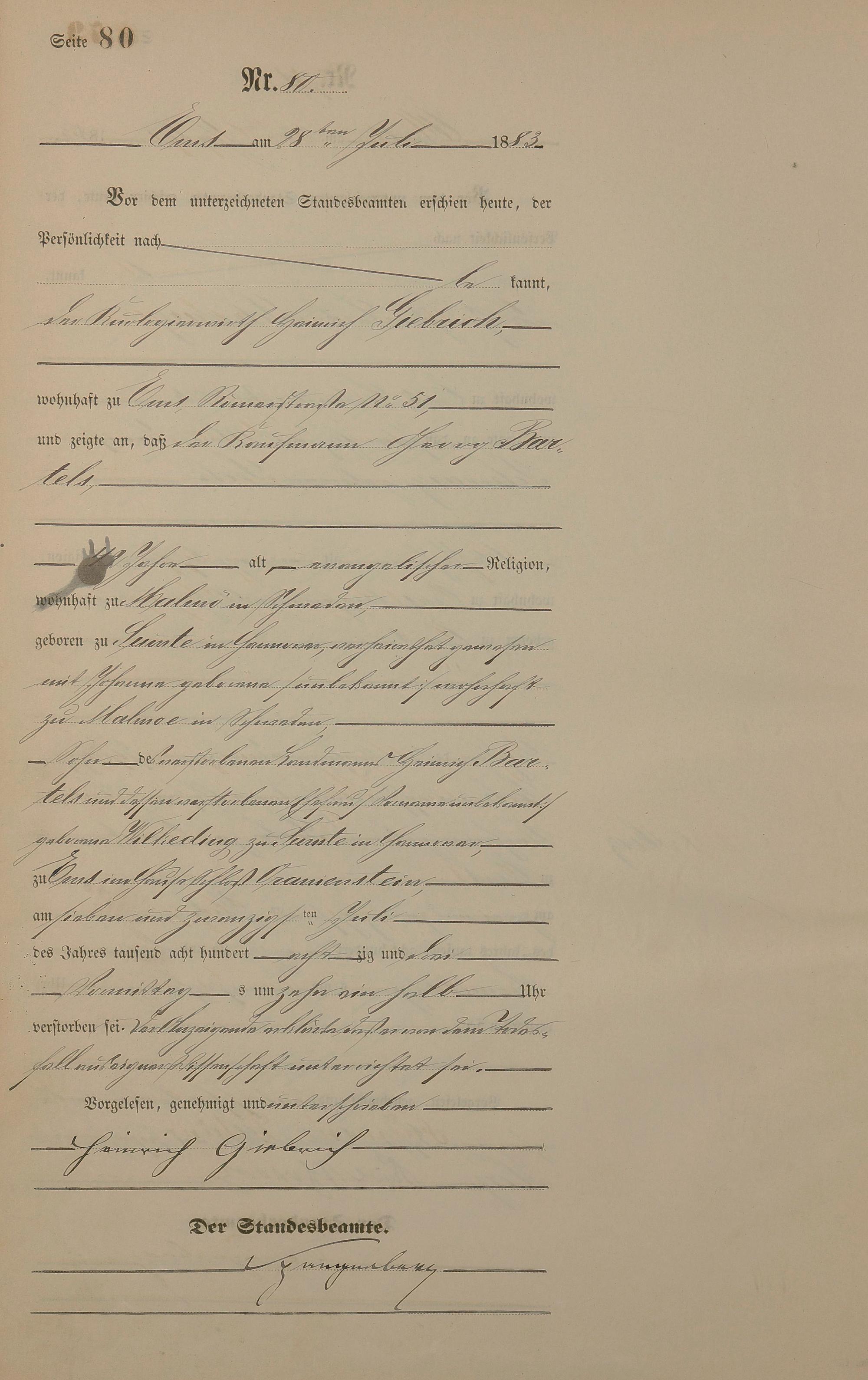 Sterberegister 1883