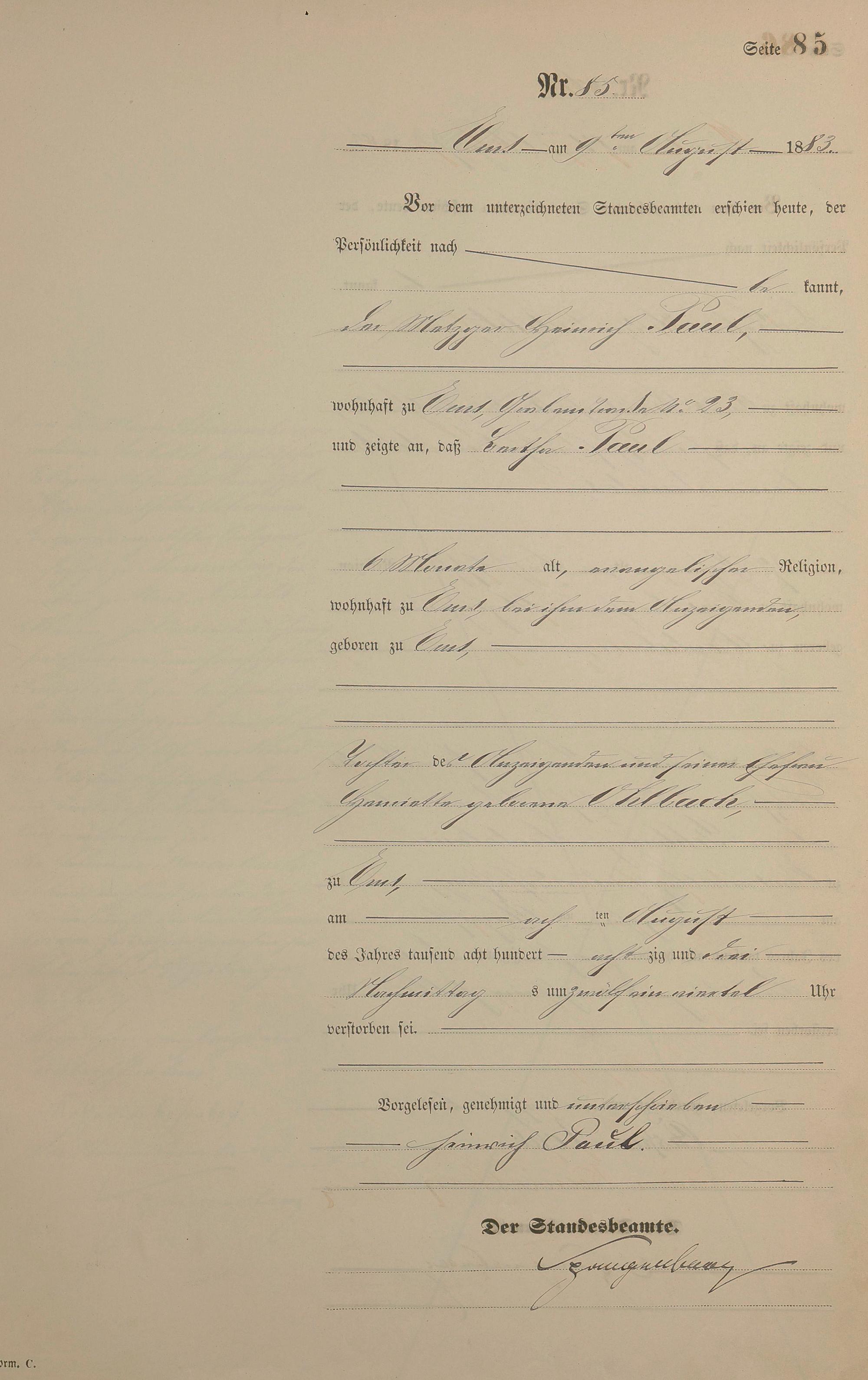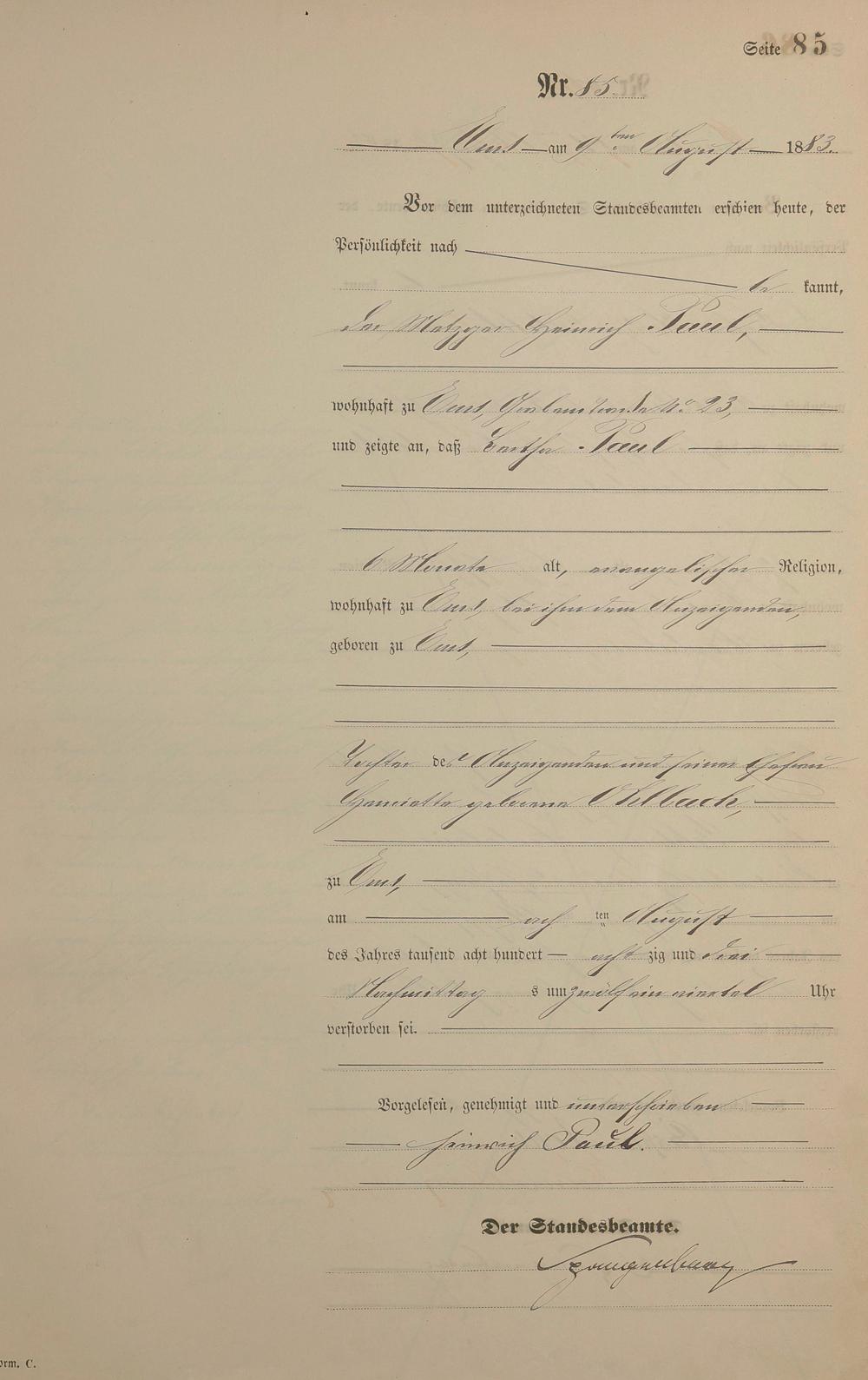 Sterberegister 1883