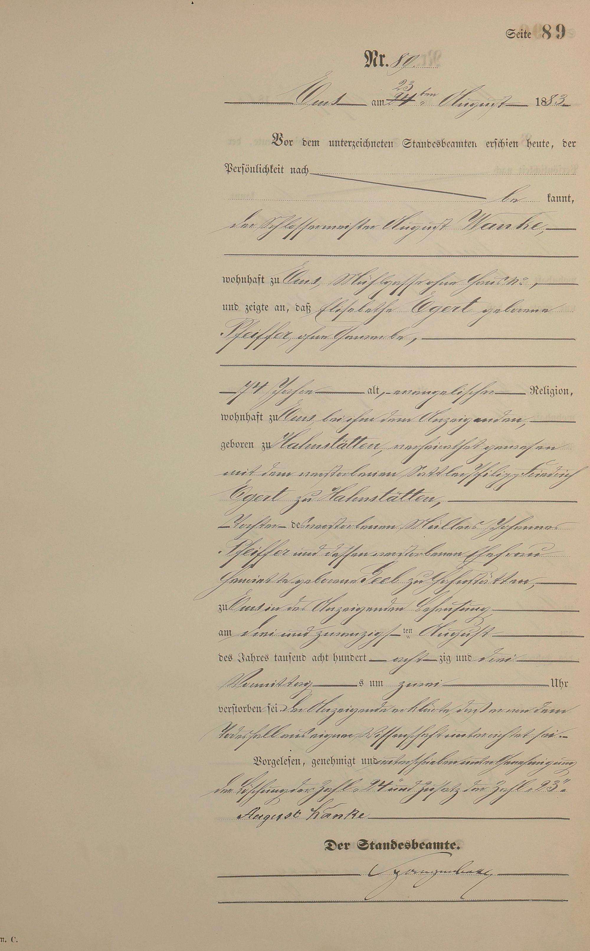 Sterberegister 1883