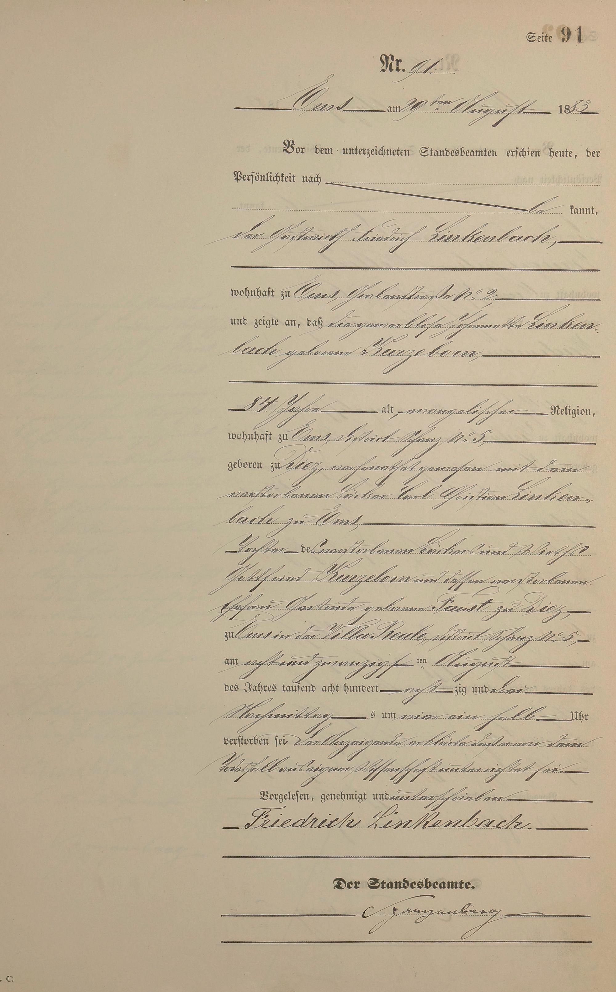 Sterberegister 1883