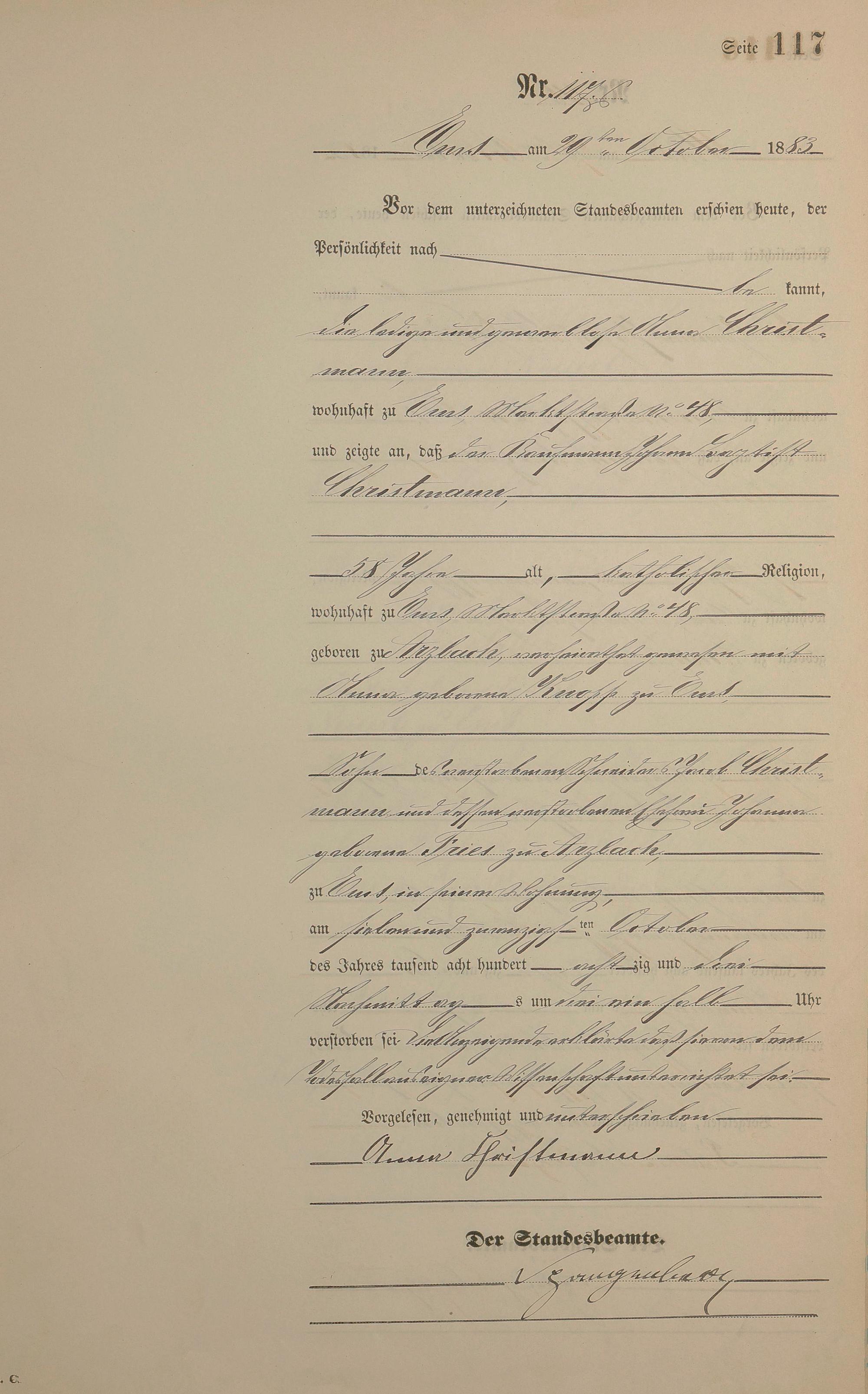 Sterberegister 1883