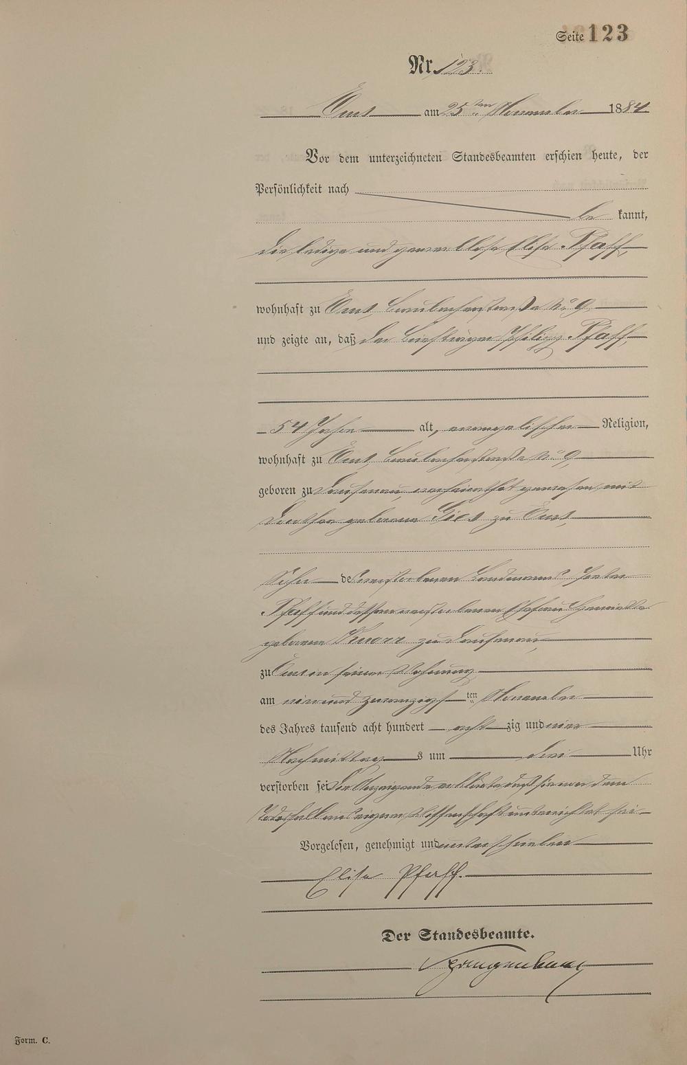 Sterberegister 1884