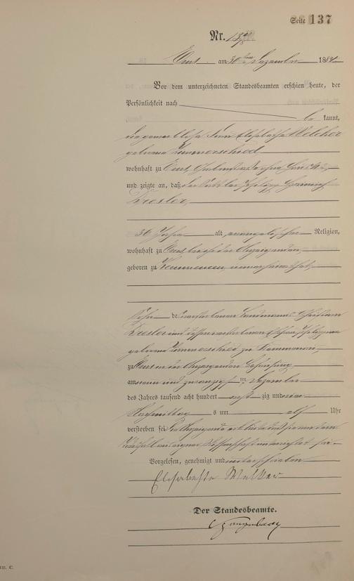 Sterberegister 1884