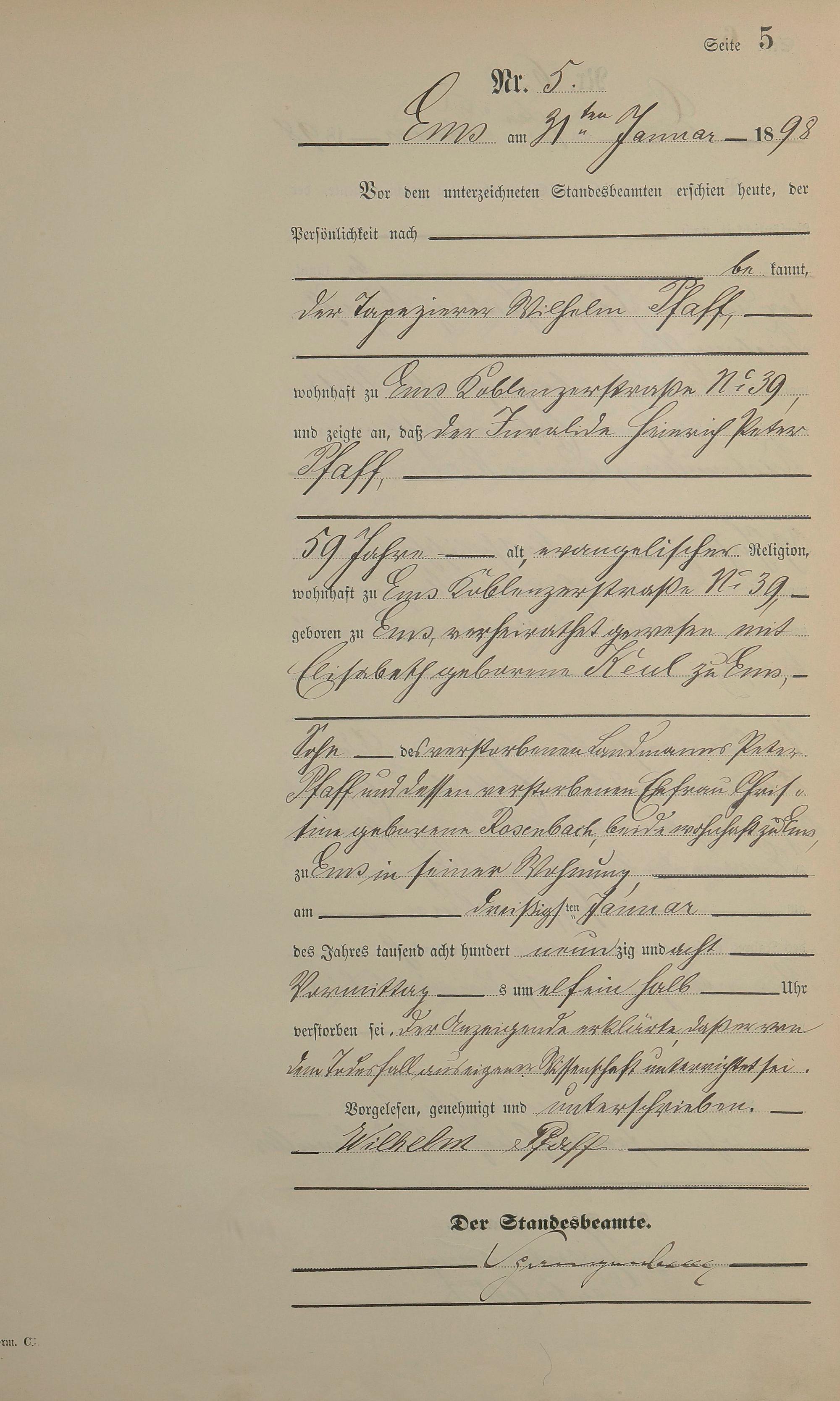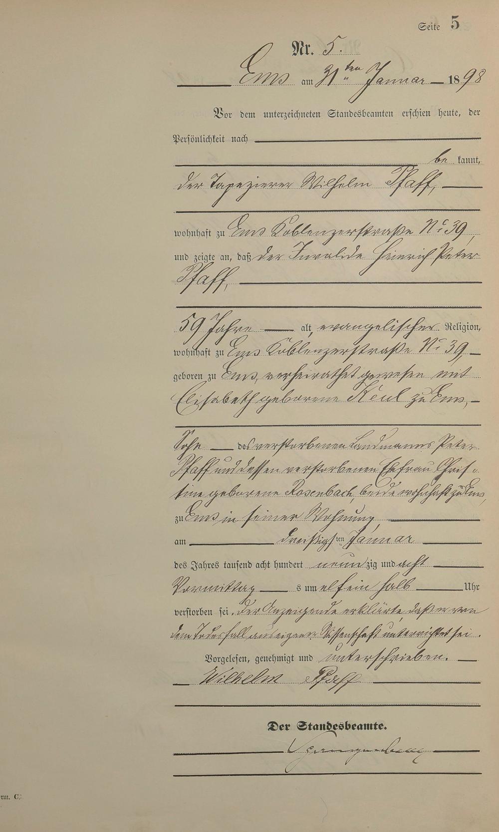 1474: Sterberegister 1898