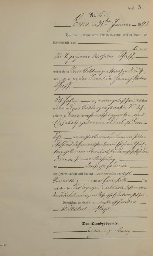 Sterberegister 1898