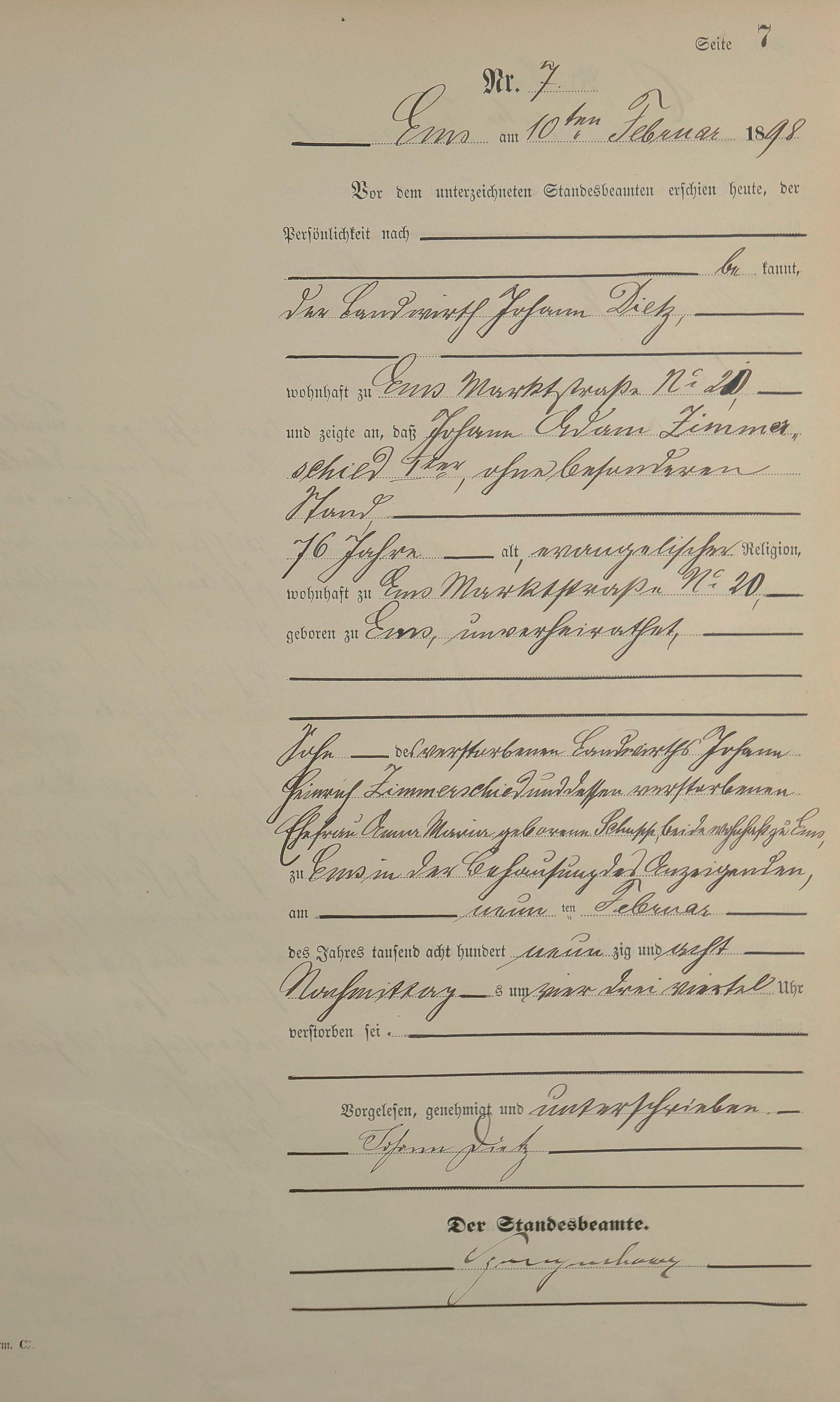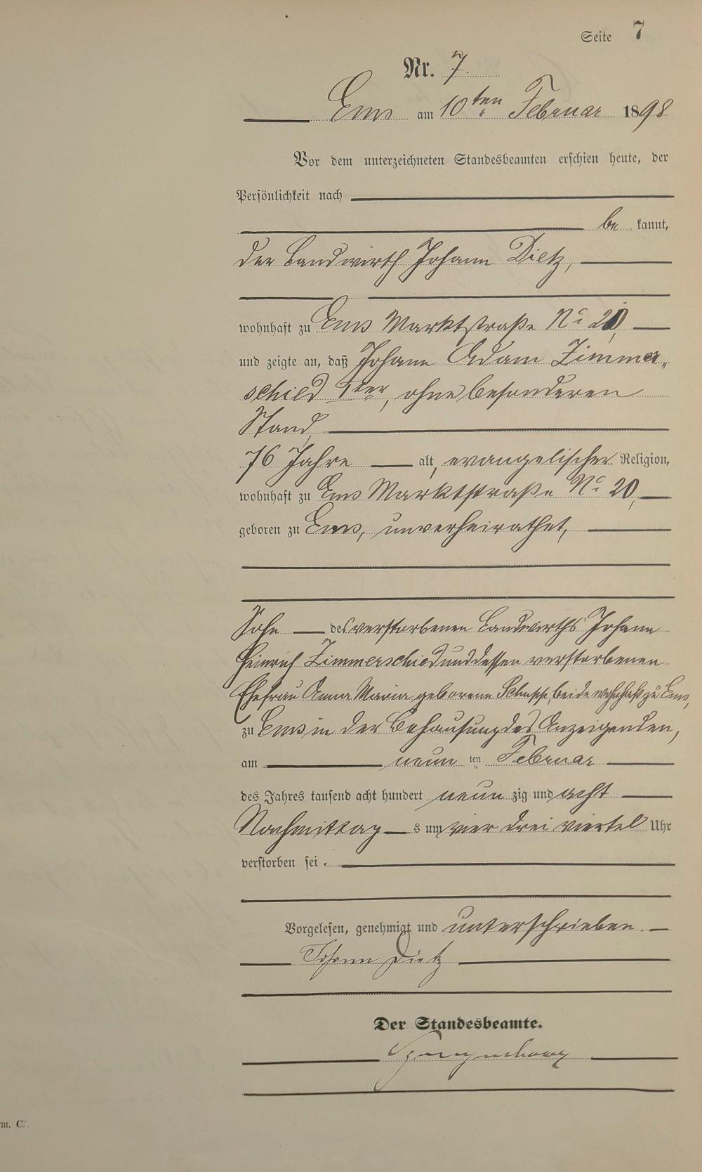 1474: Sterberegister 1898