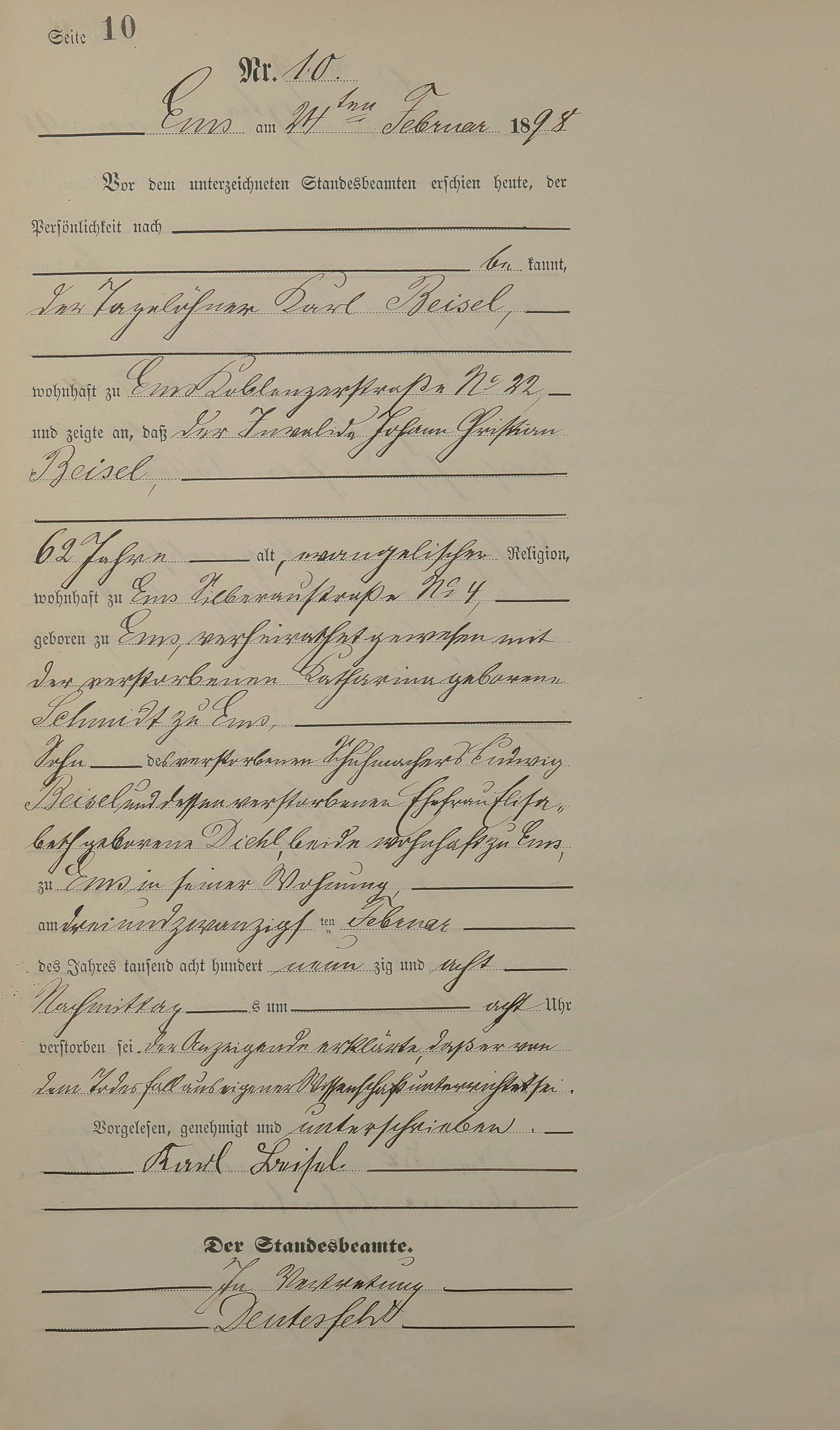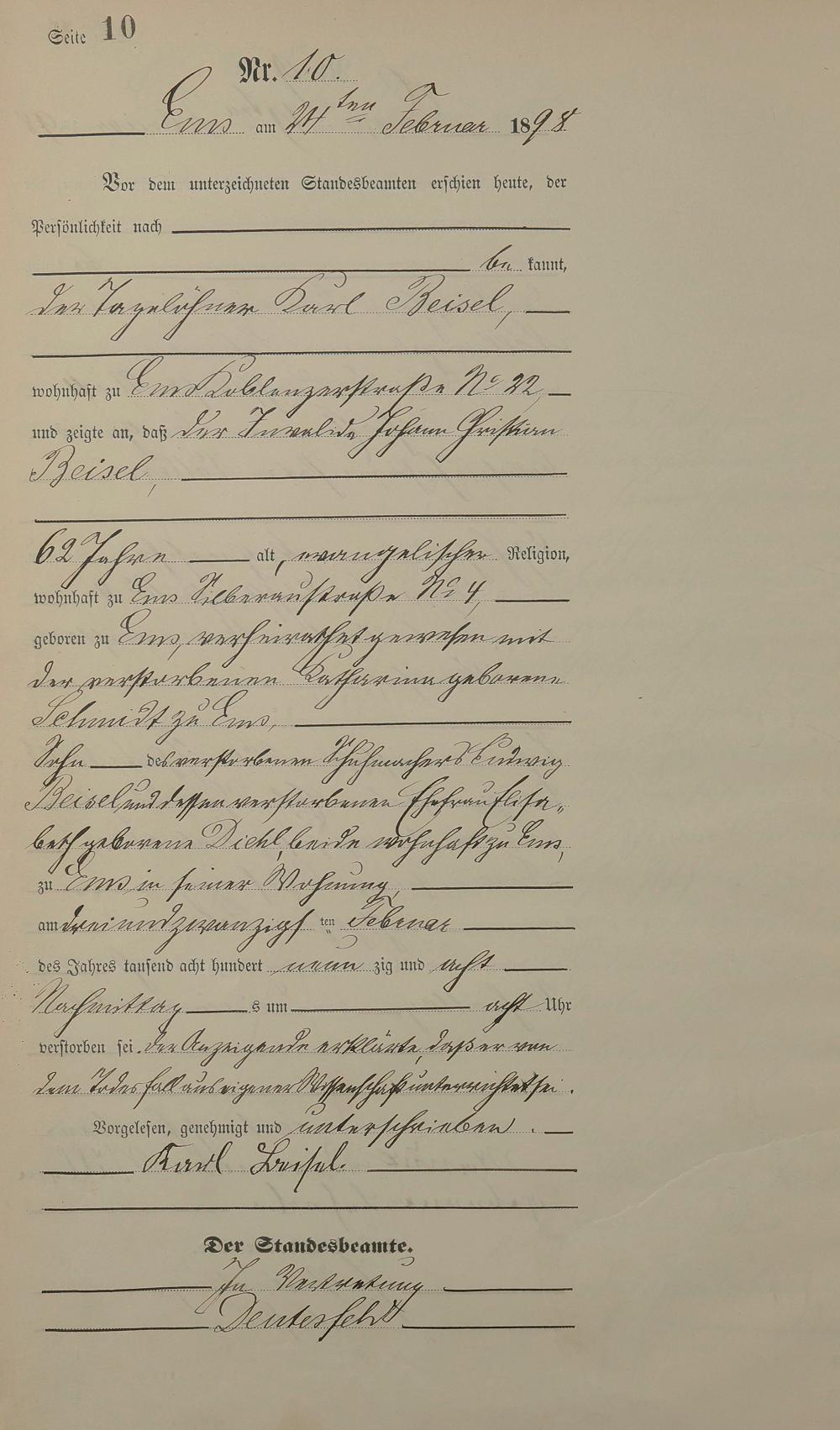 1474: Sterberegister 1898