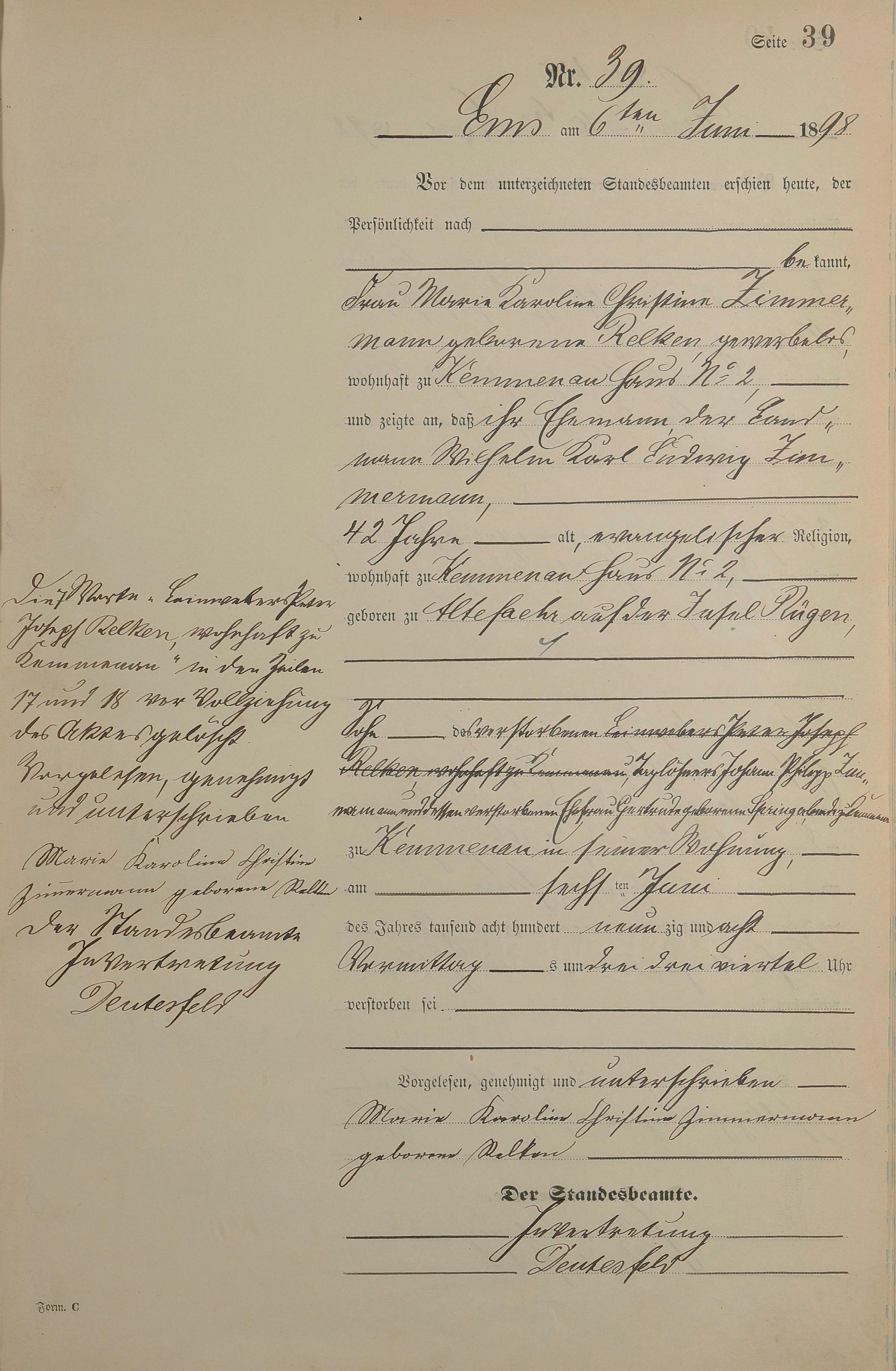 1474: Sterberegister 1898