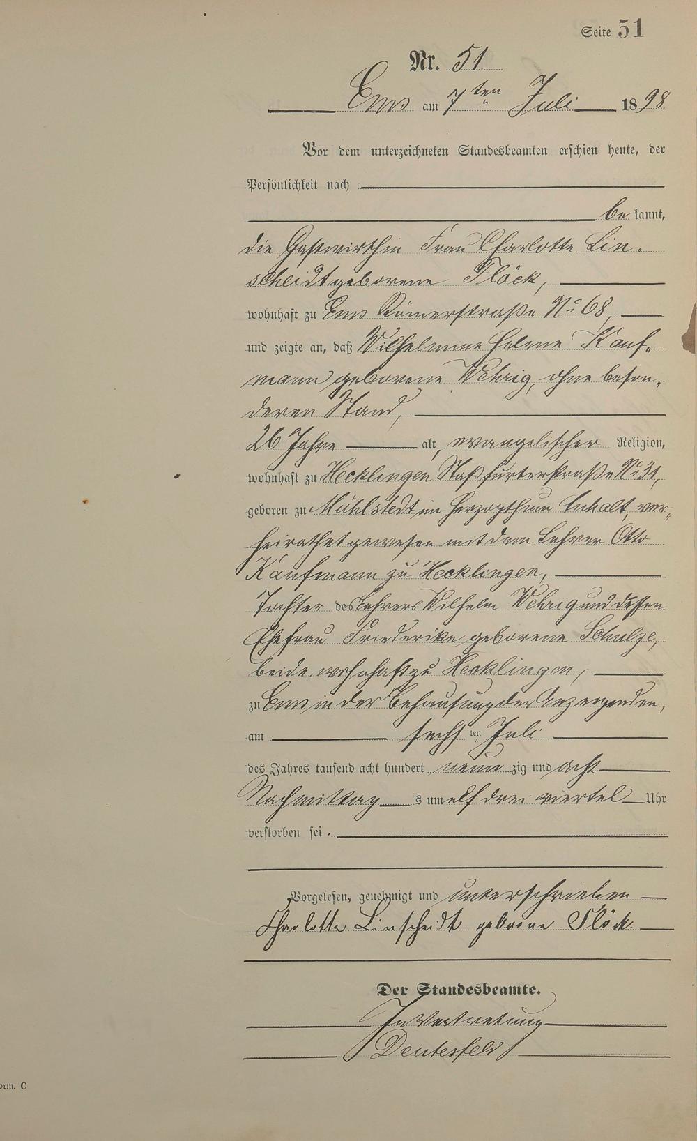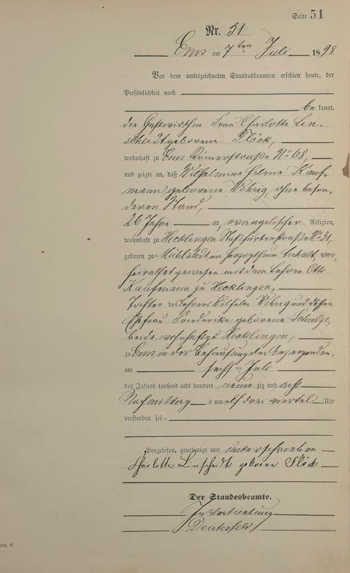 Sterberegister 1898