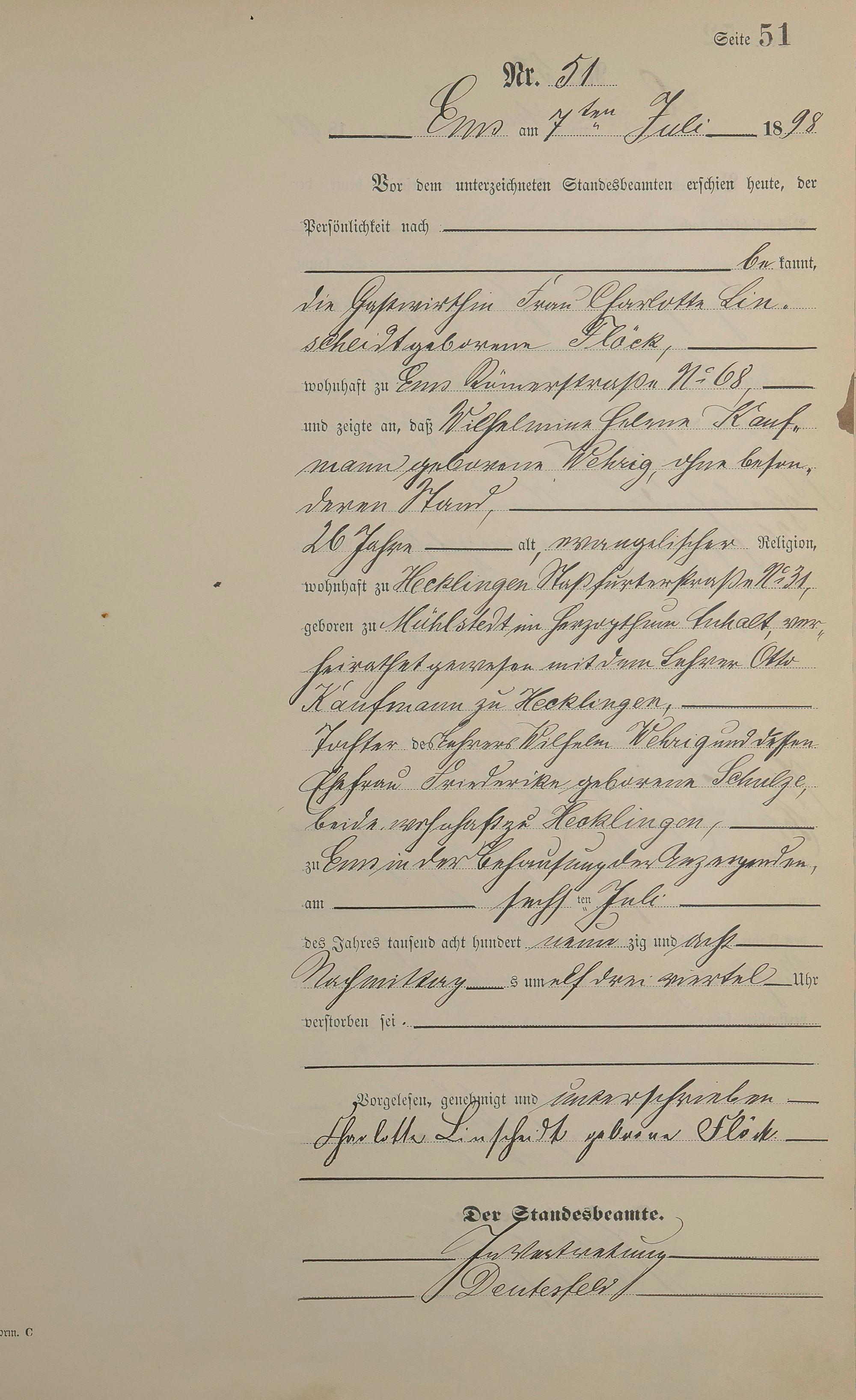 1474: Sterberegister 1898