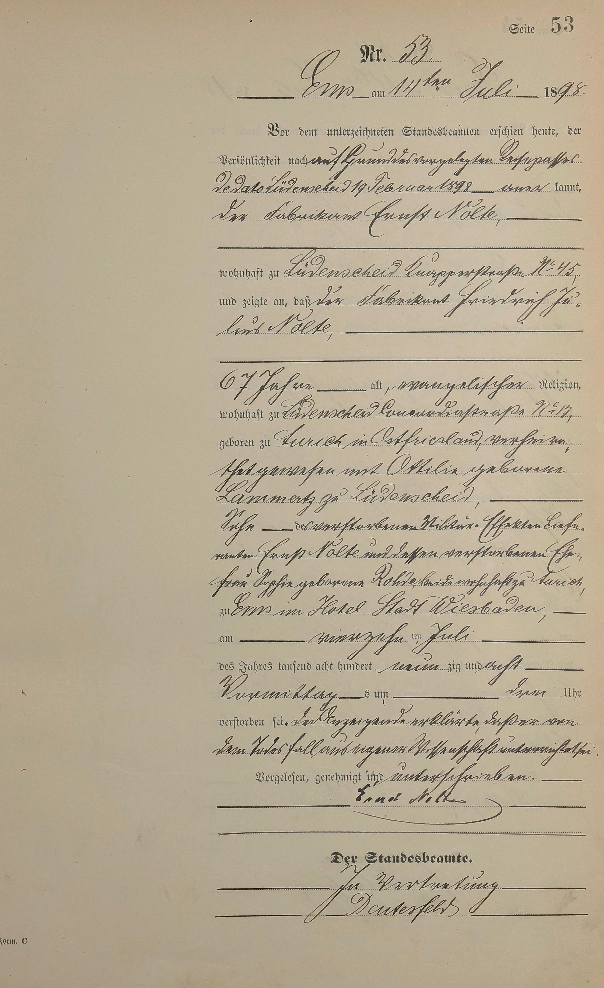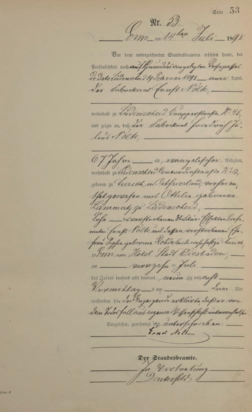 Sterberegister 1898