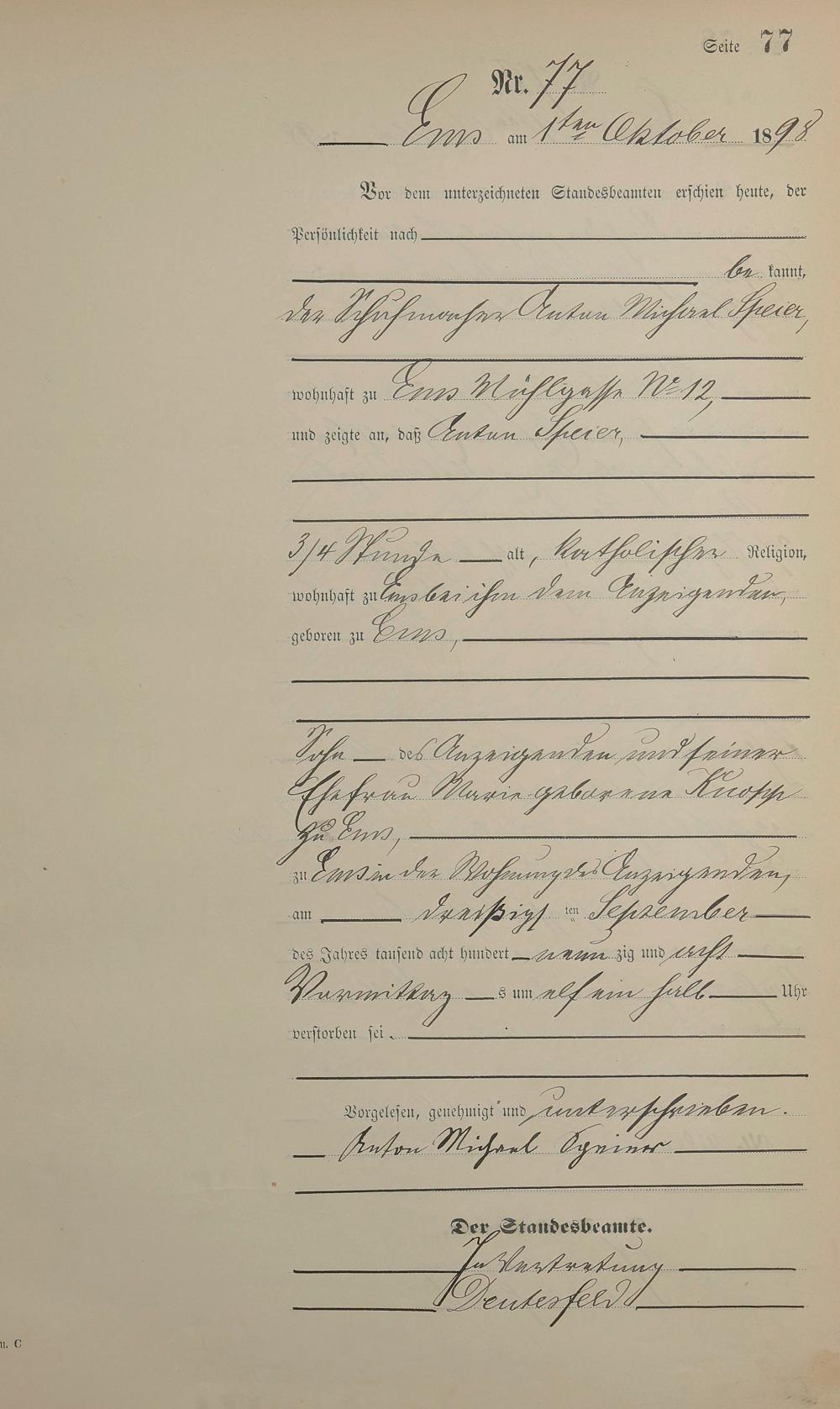 1474: Sterberegister 1898