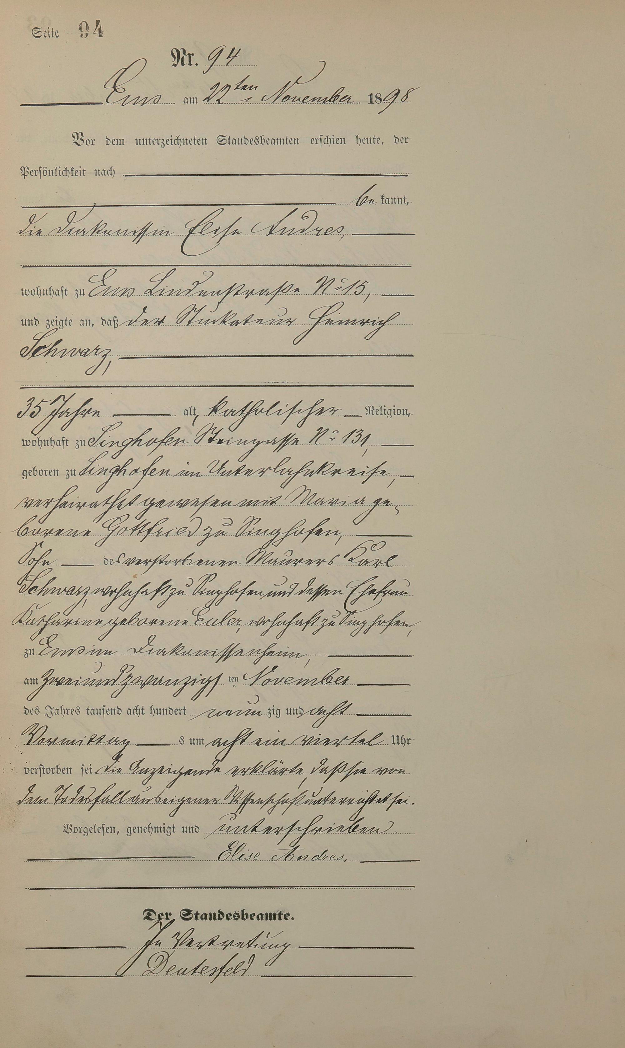 1474: Sterberegister 1898