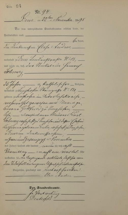 Sterberegister 1898