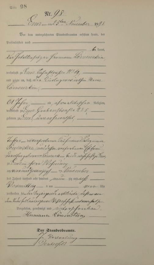 Sterberegister 1898