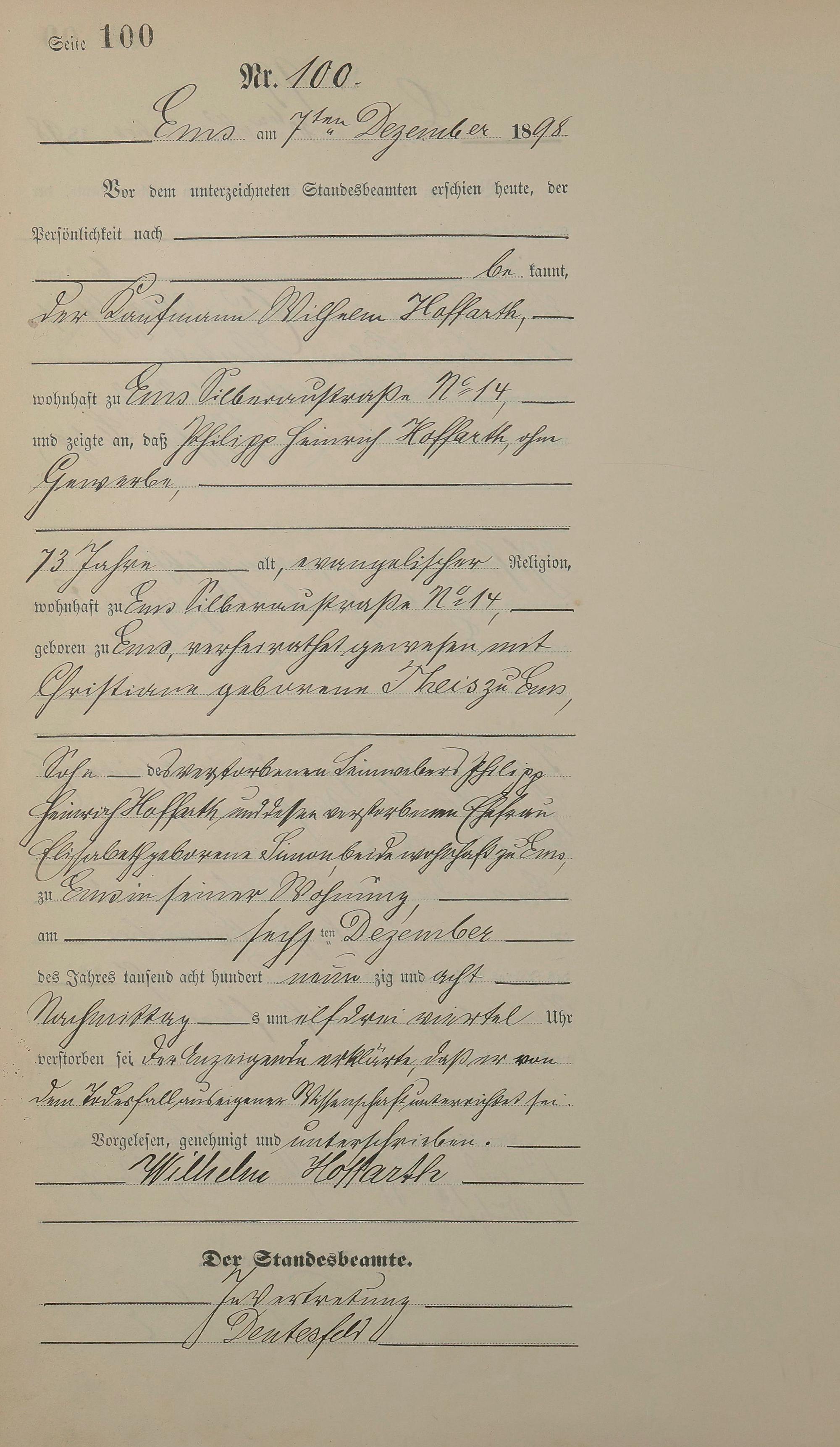 1474: Sterberegister 1898
