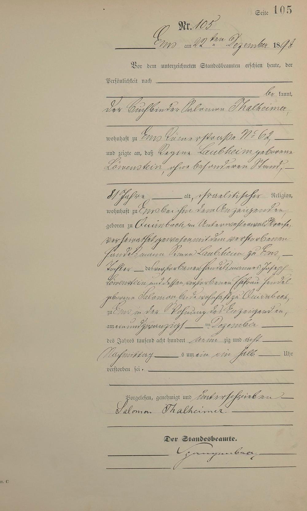 1474: Sterberegister 1898