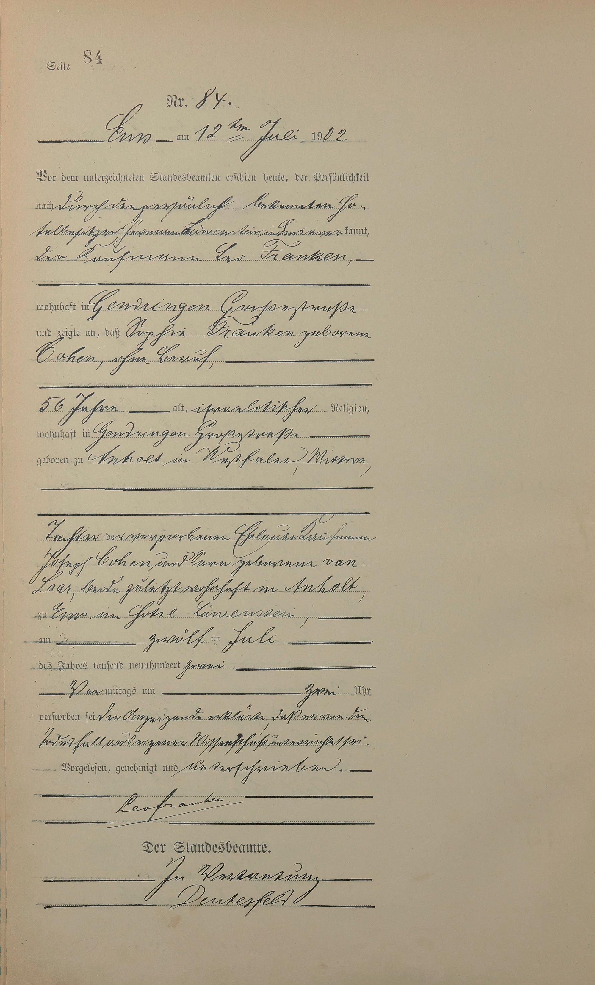 1478: Sterberegister 1902