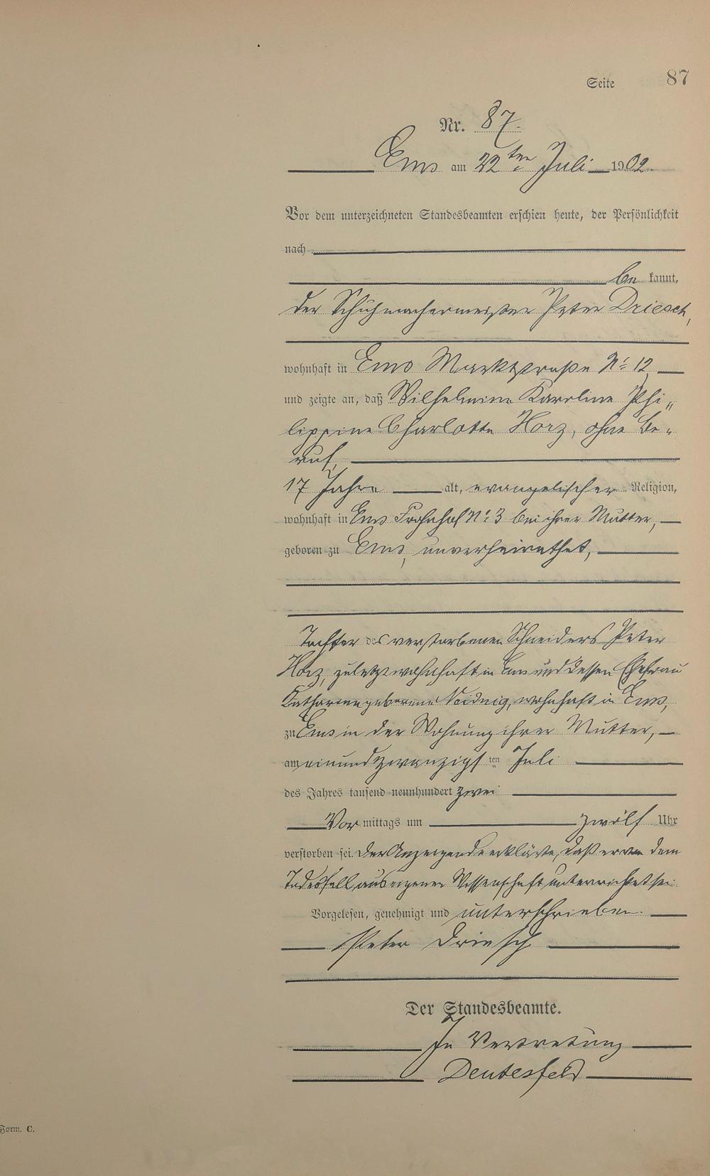 1478: Sterberegister 1902