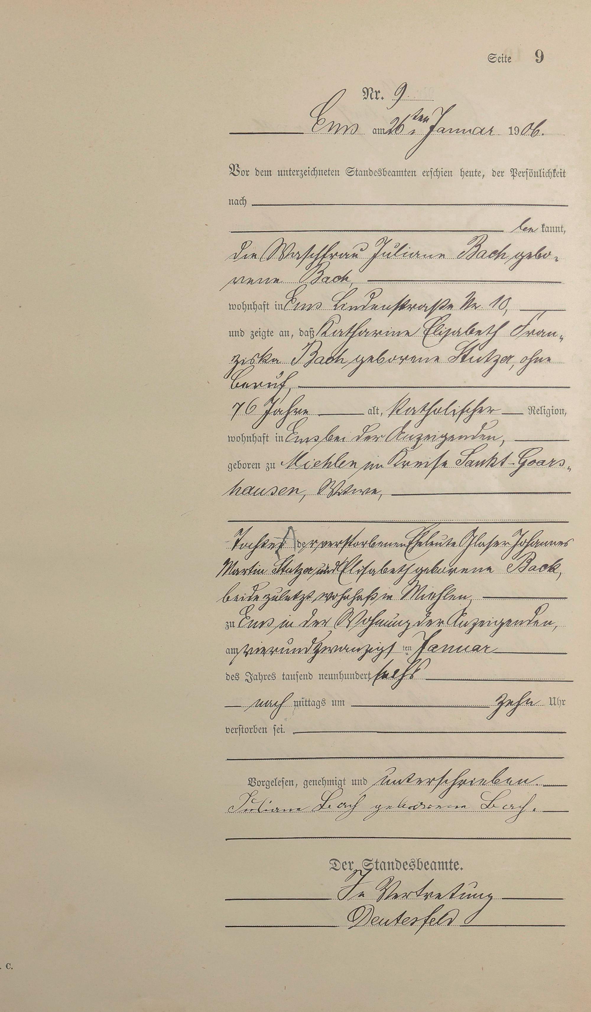 Sterberegister 1906