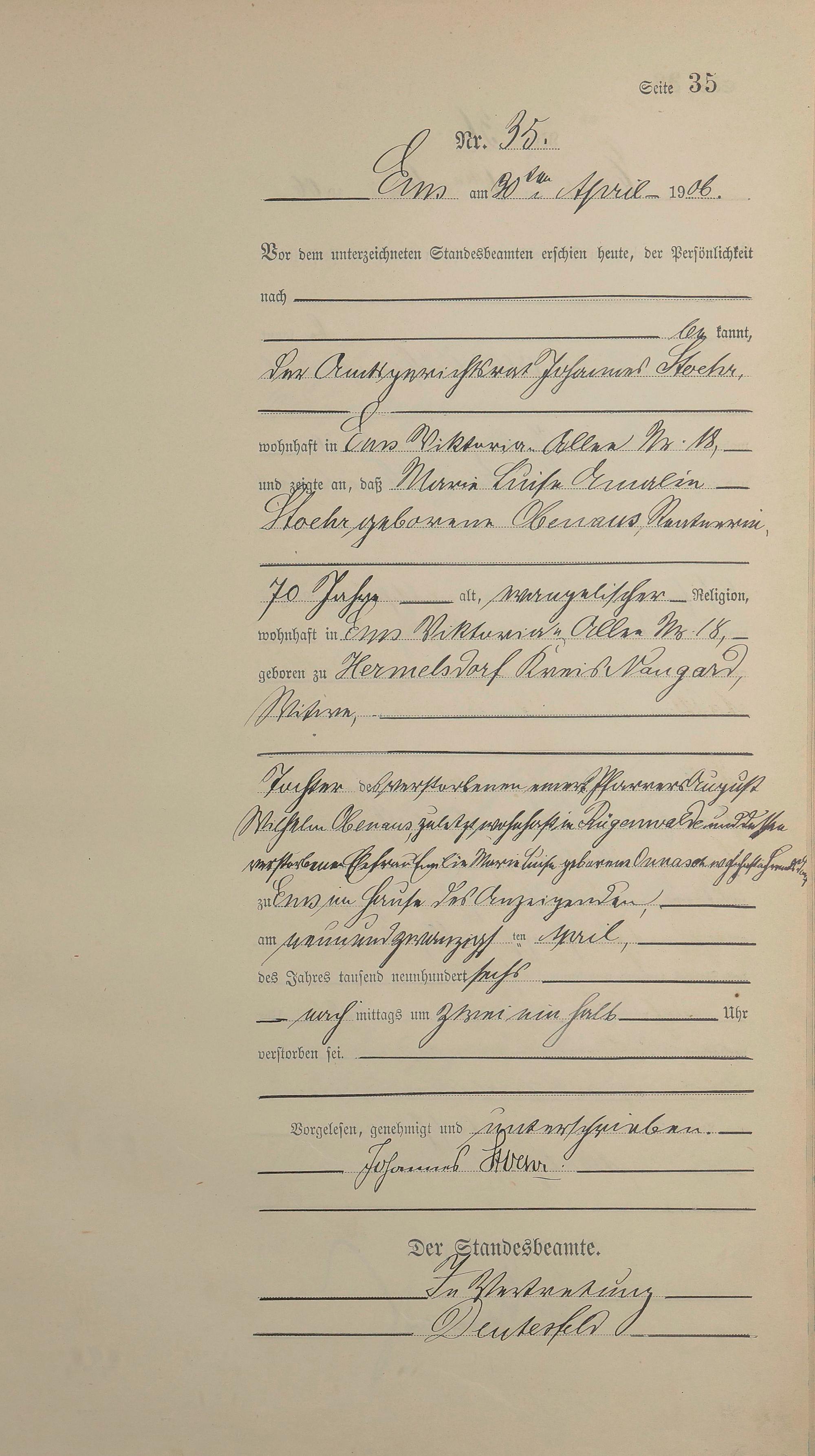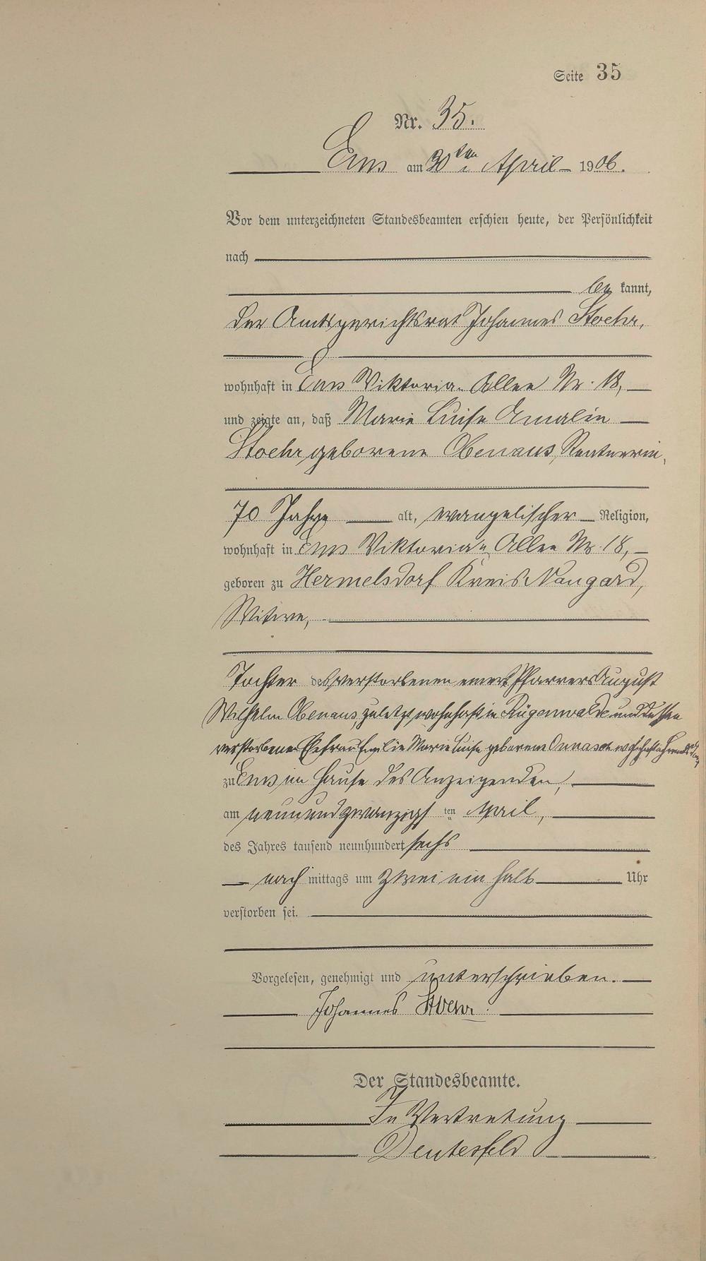 1482: Sterberegister 1906