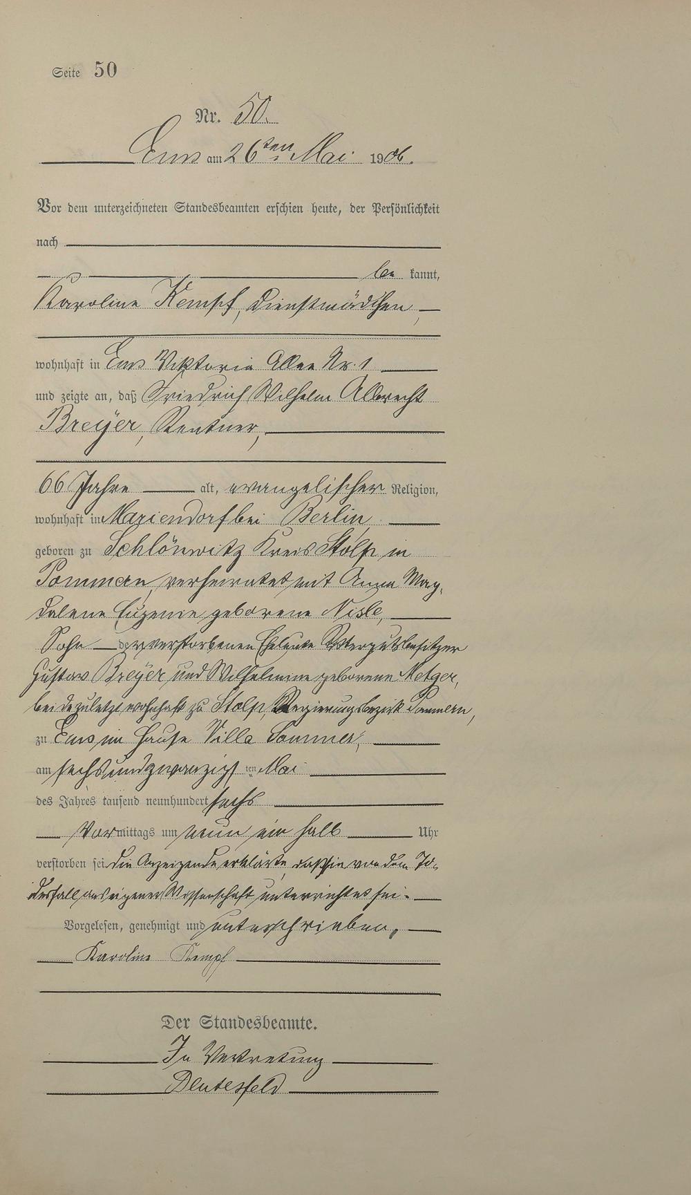 Sterberegister 1906