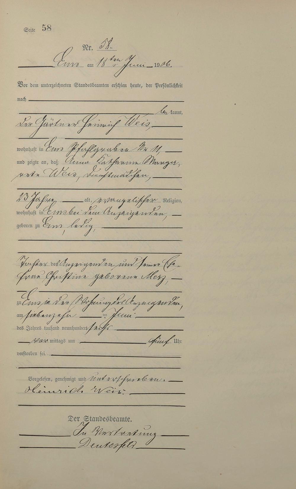 1482: Sterberegister 1906