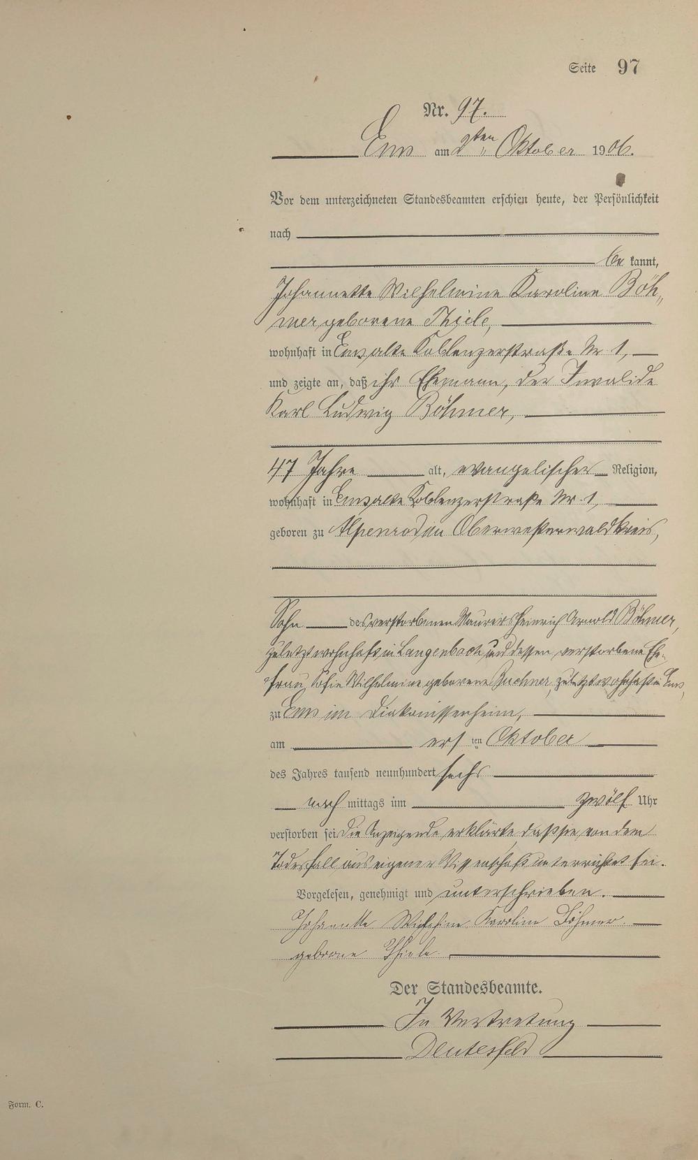 Sterberegister 1906