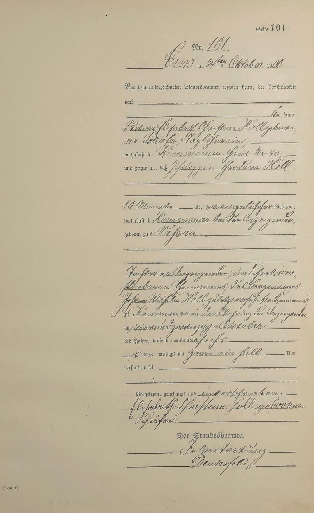 1482: Sterberegister 1906