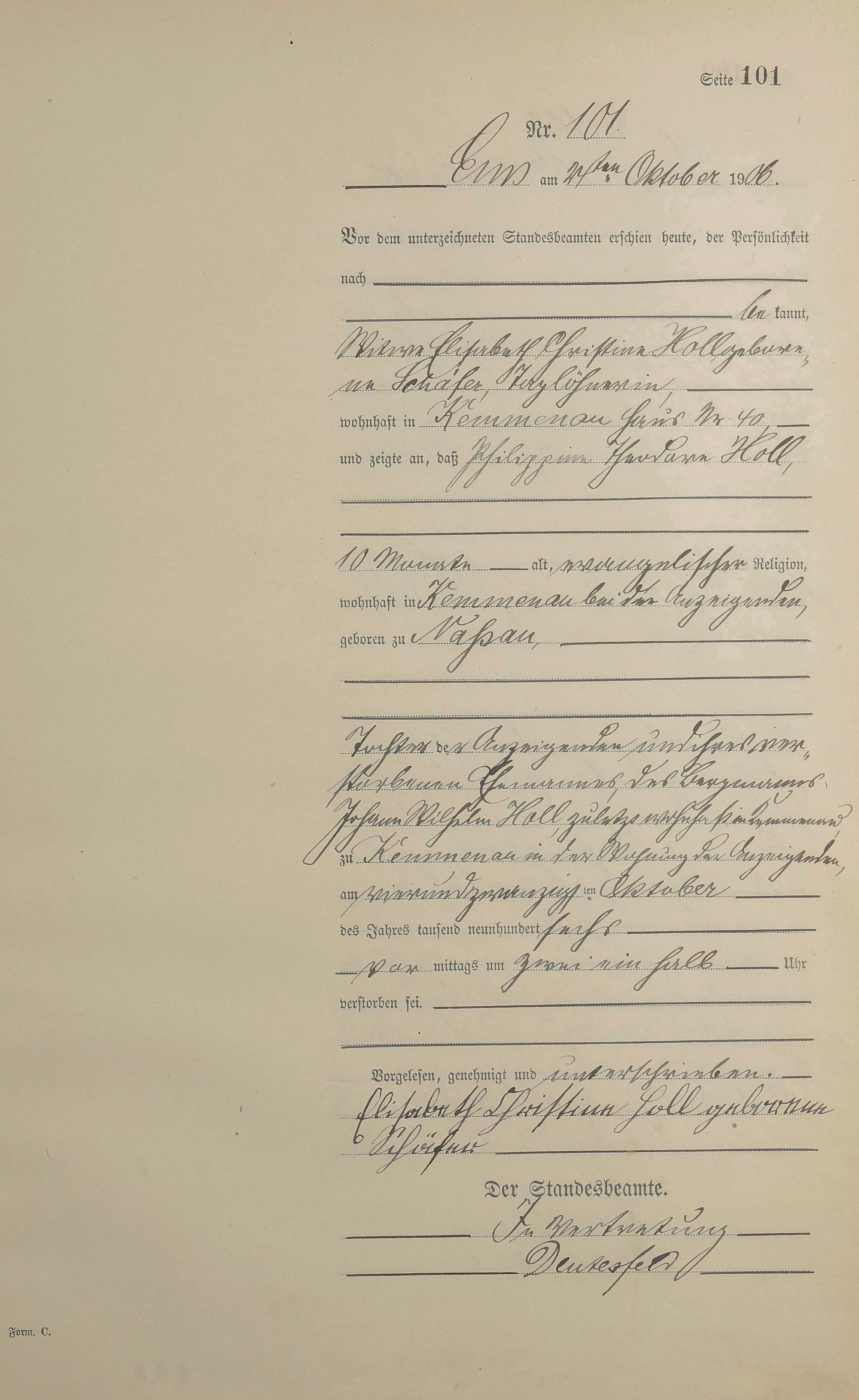 Sterberegister 1906