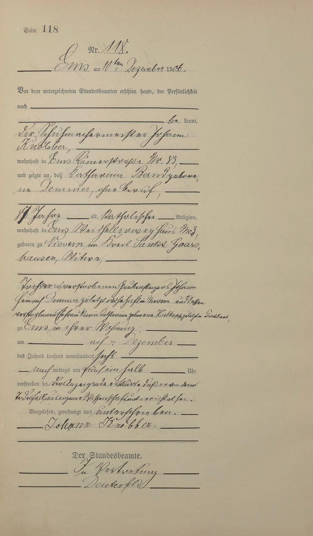 1482: Sterberegister 1906