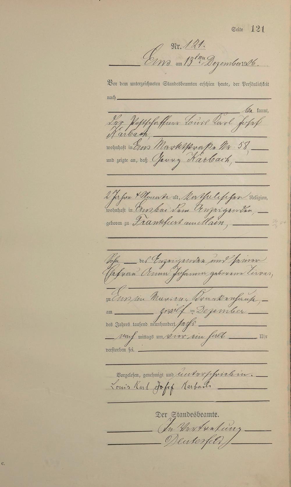 Sterberegister 1906