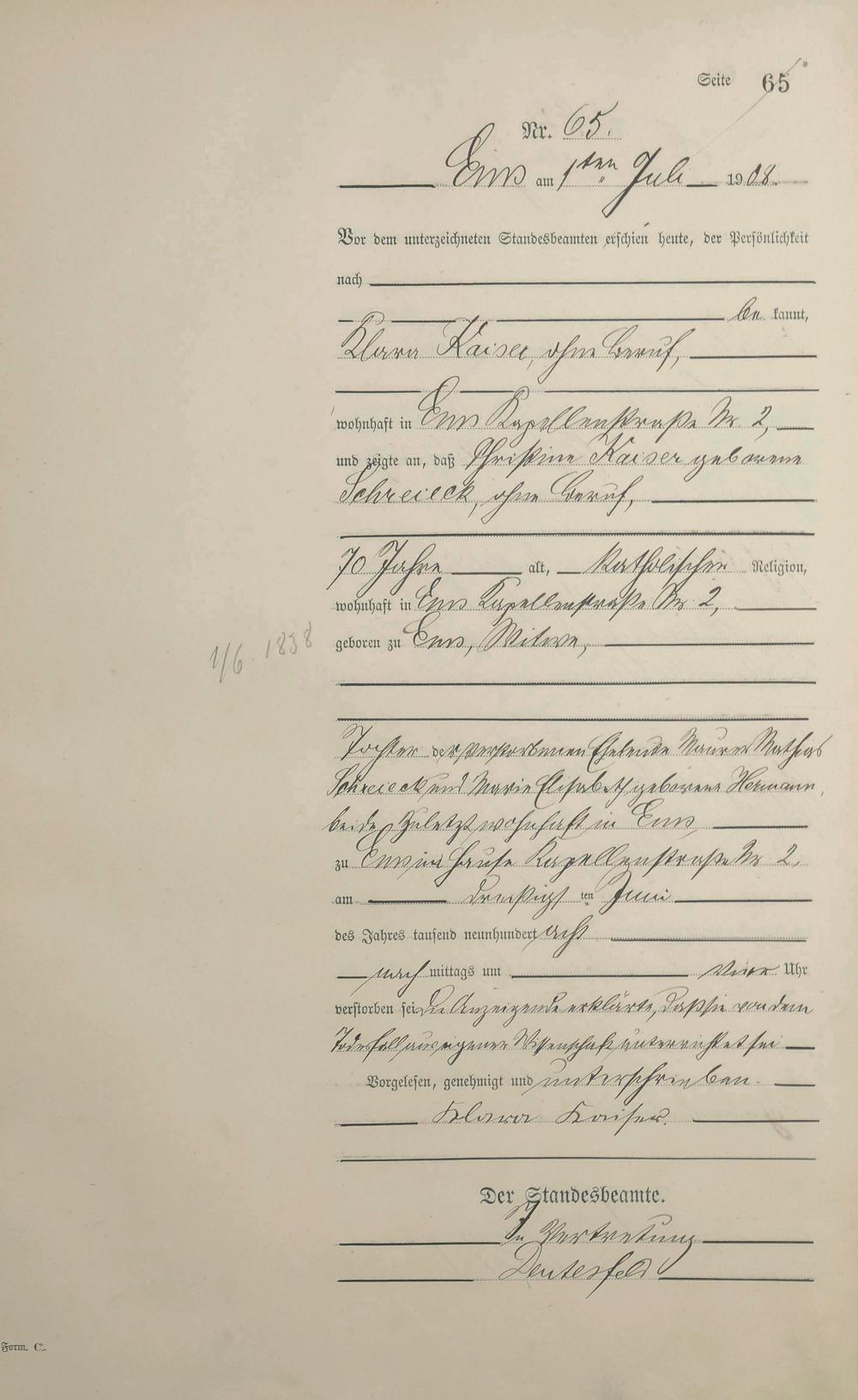 1484: Sterberegister 1908