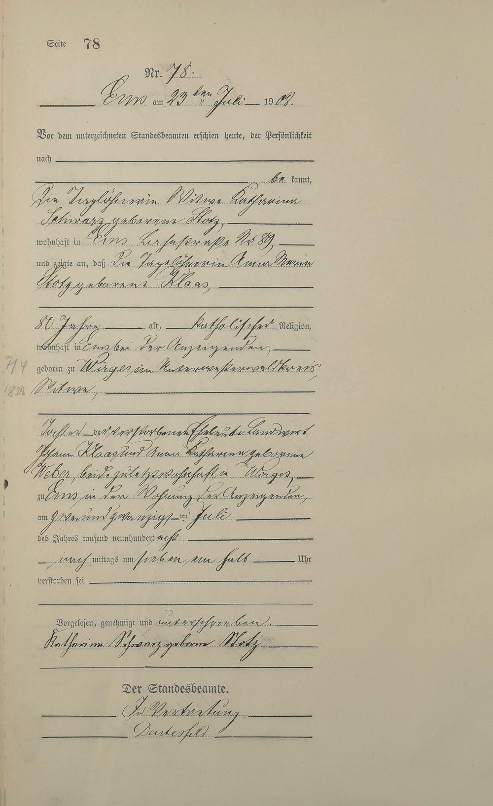1484: Sterberegister 1908