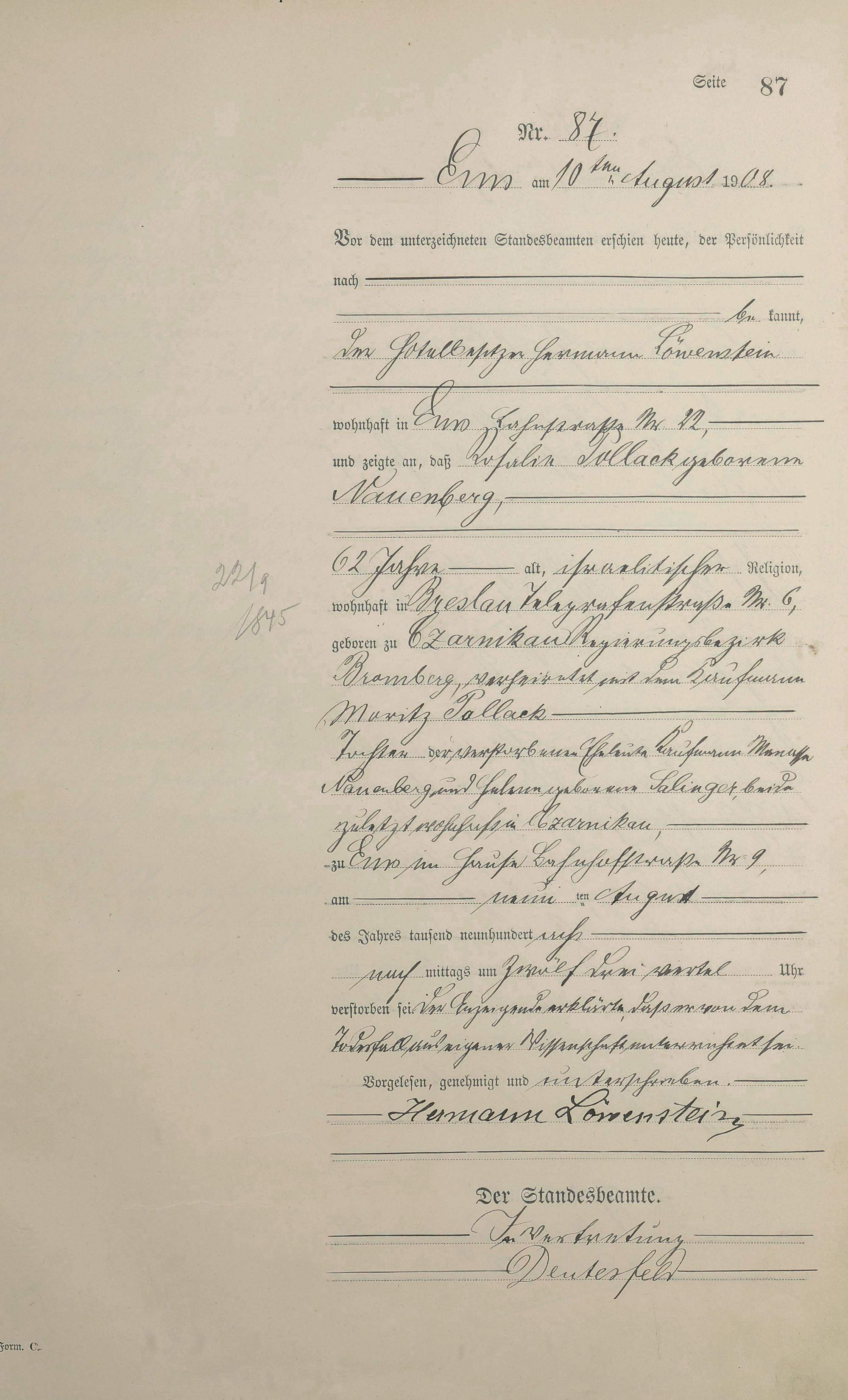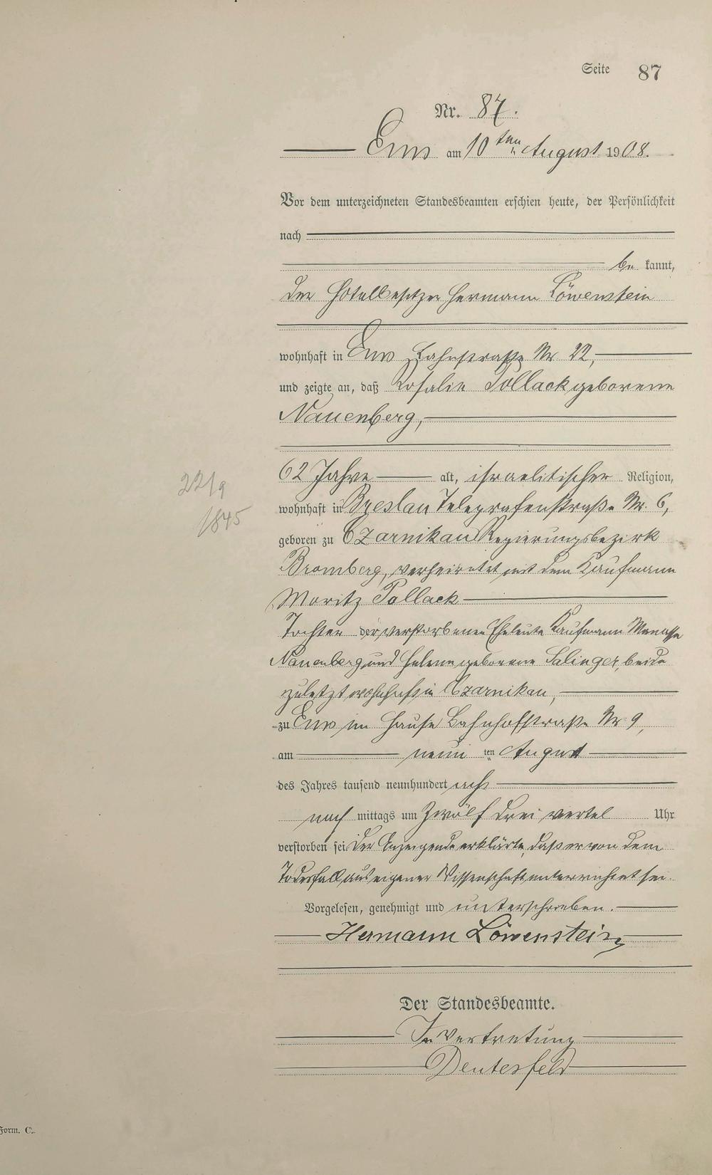 1484: Sterberegister 1908