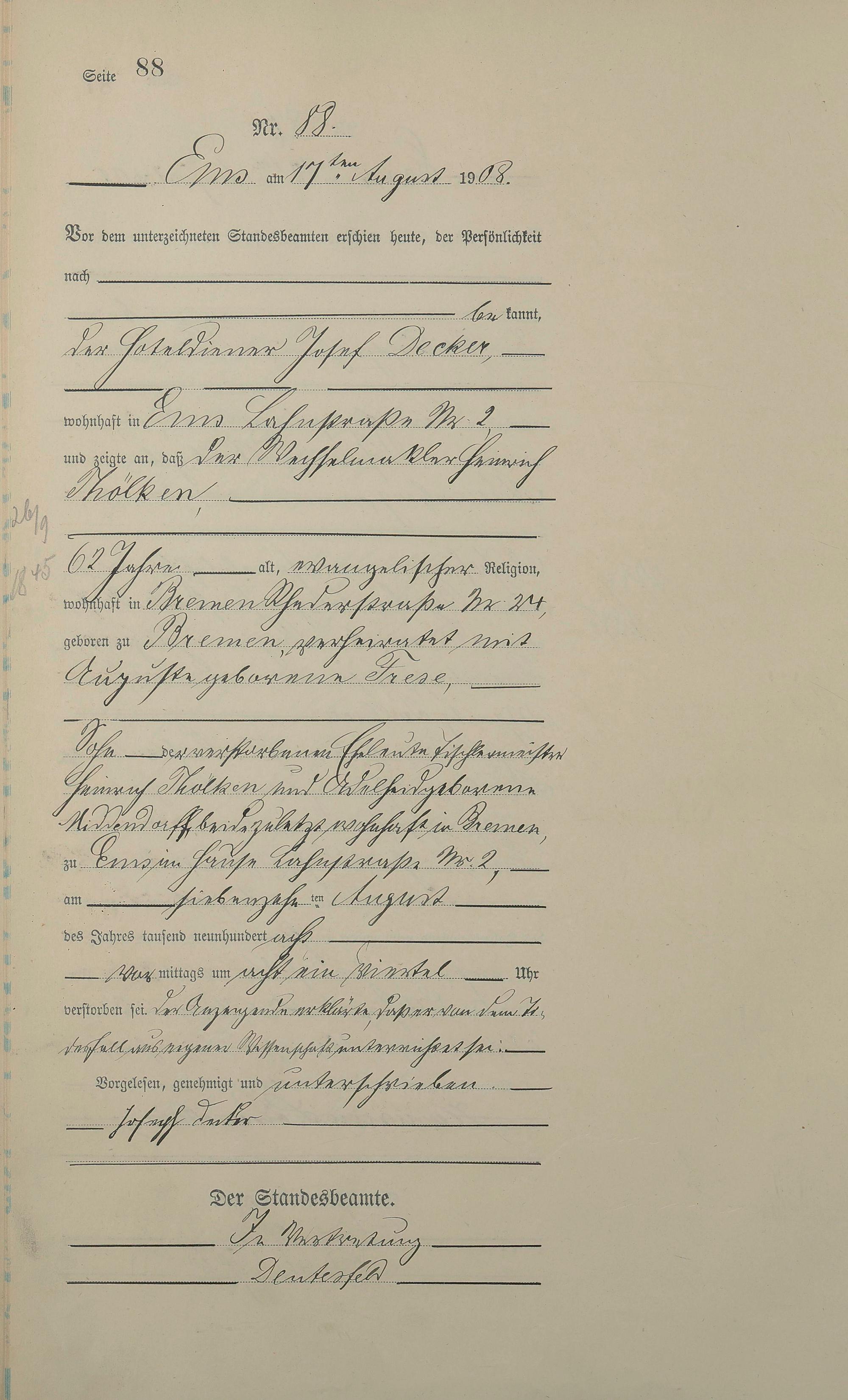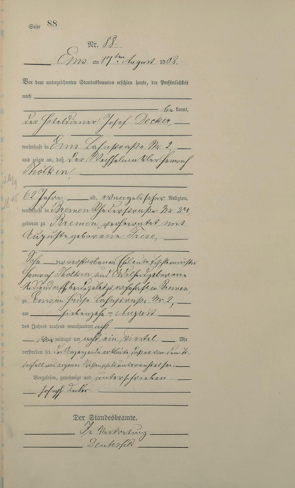 Sterberegister 1908