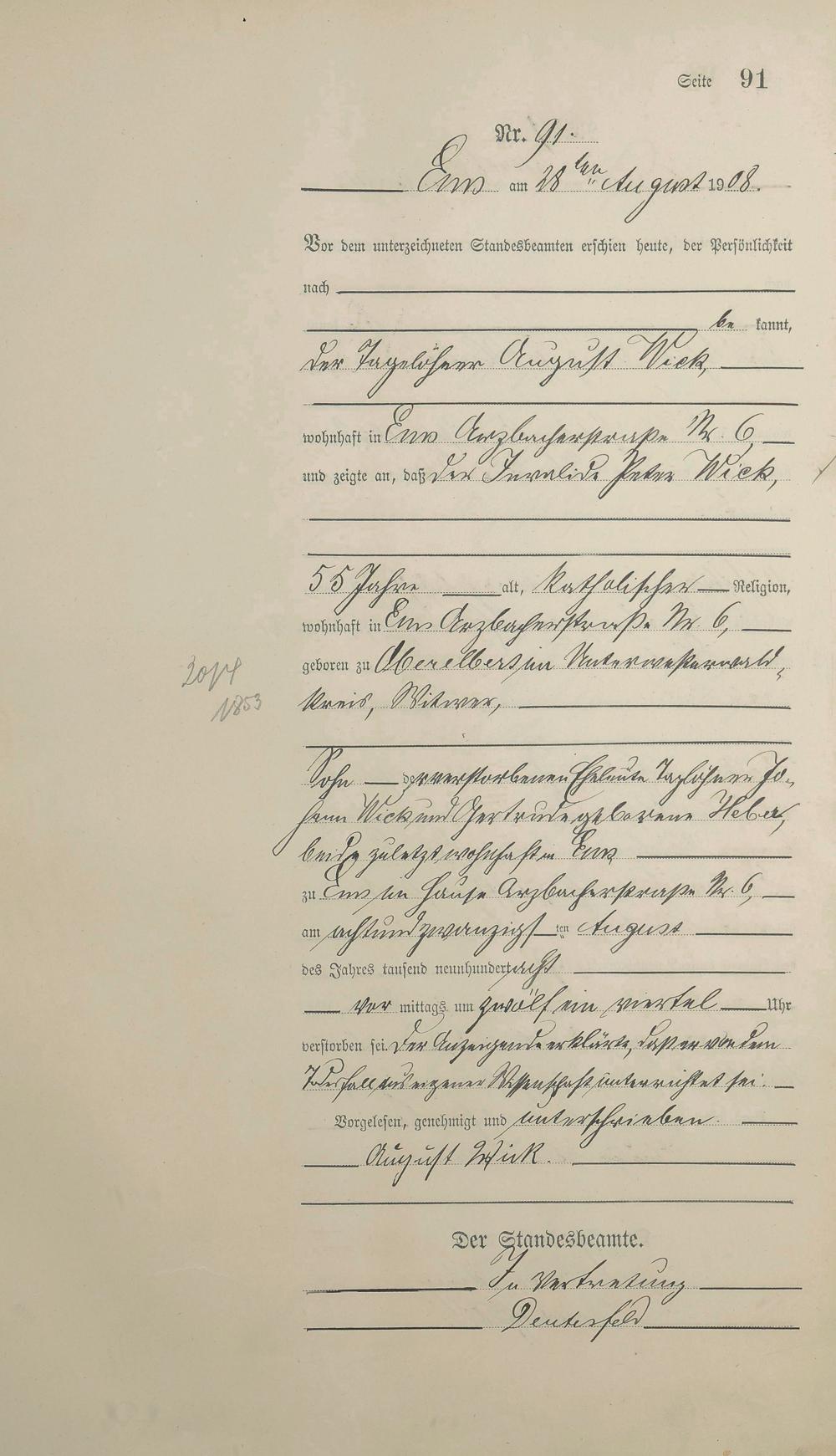 Sterberegister 1908