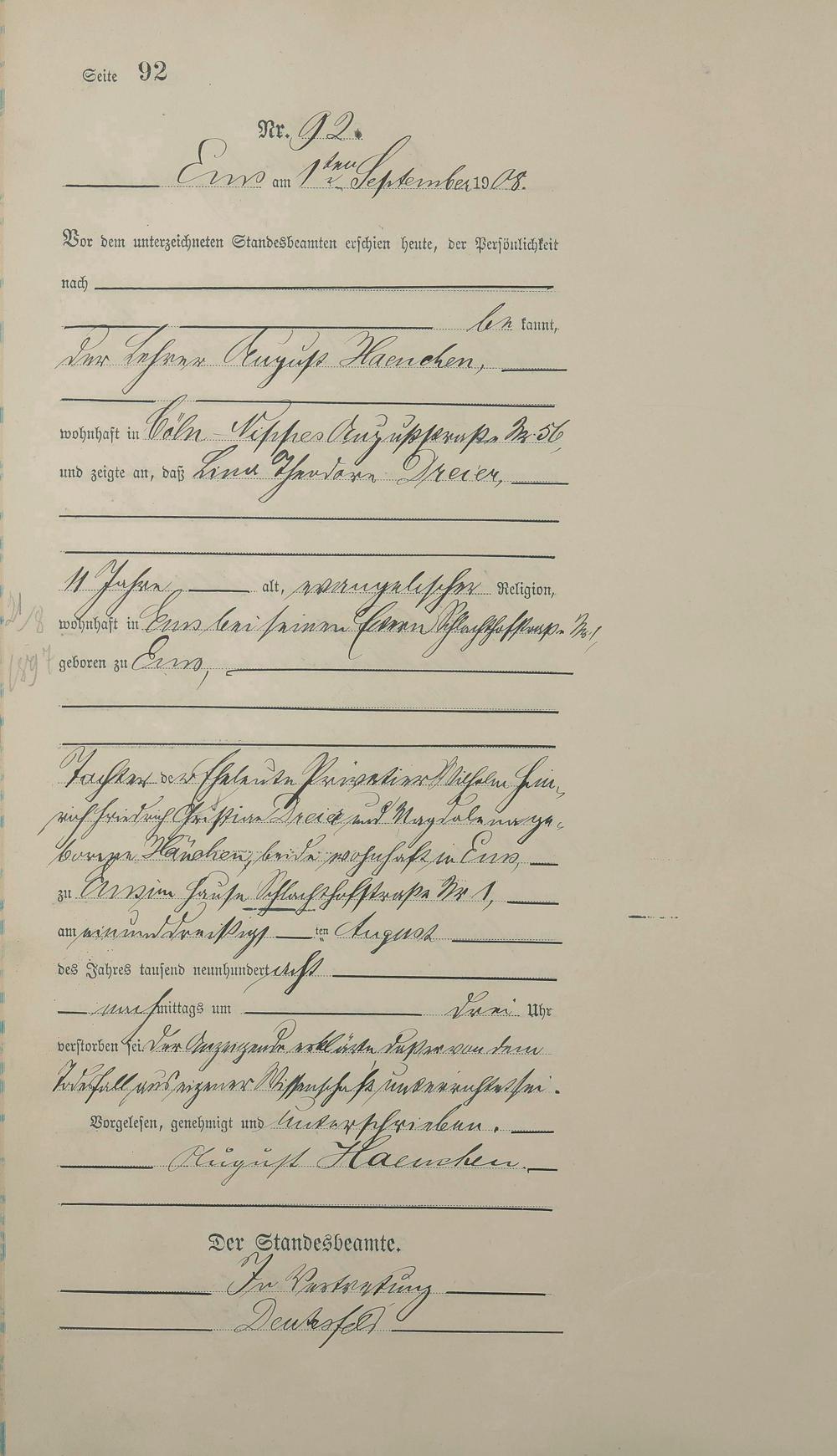 Sterberegister 1908