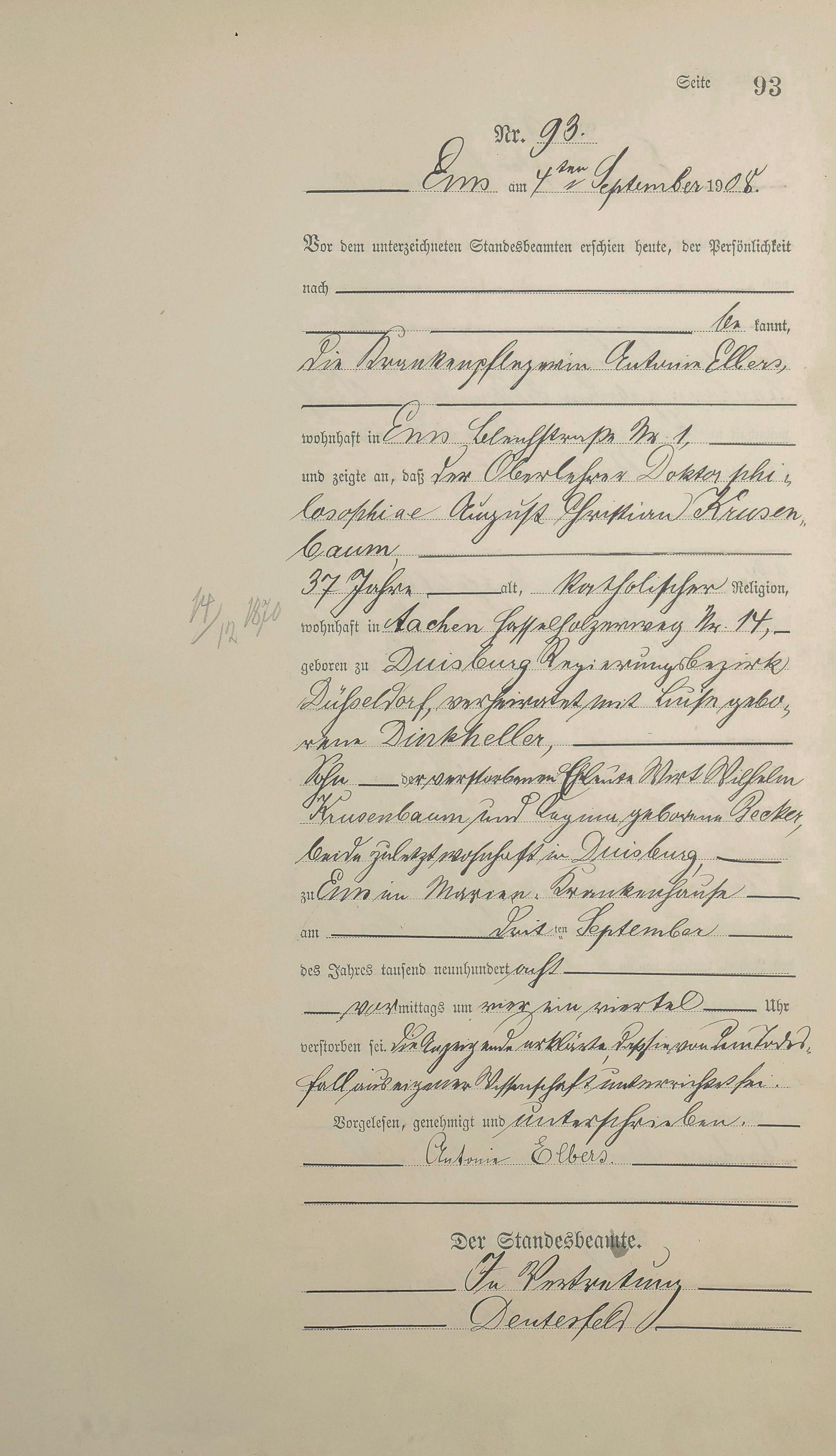 1484: Sterberegister 1908