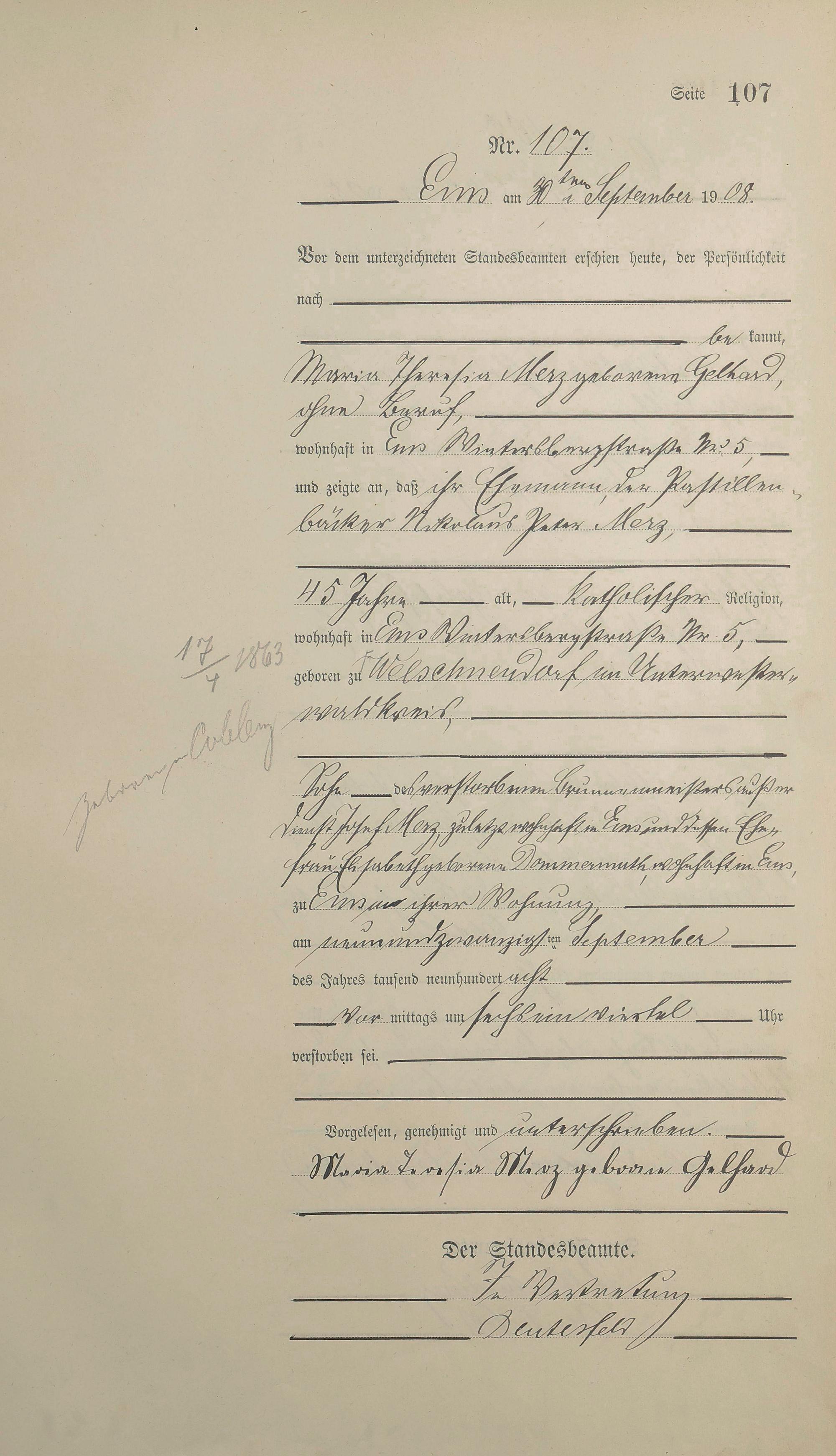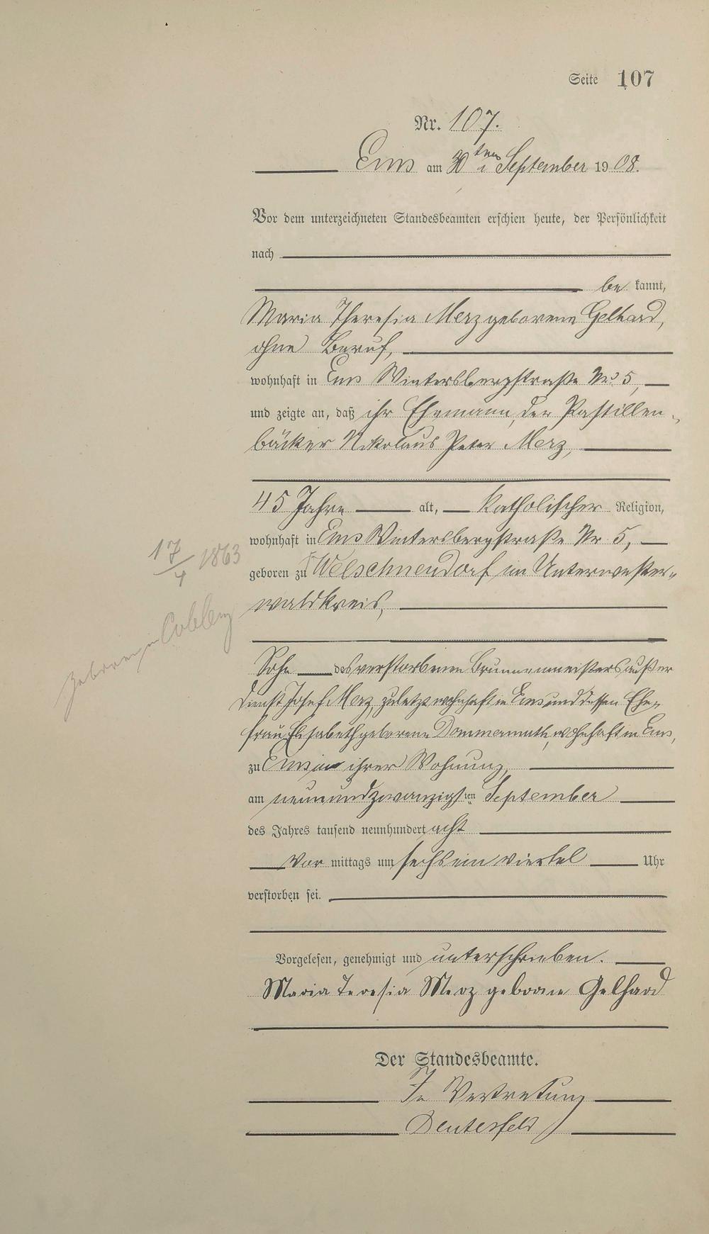 1484: Sterberegister 1908