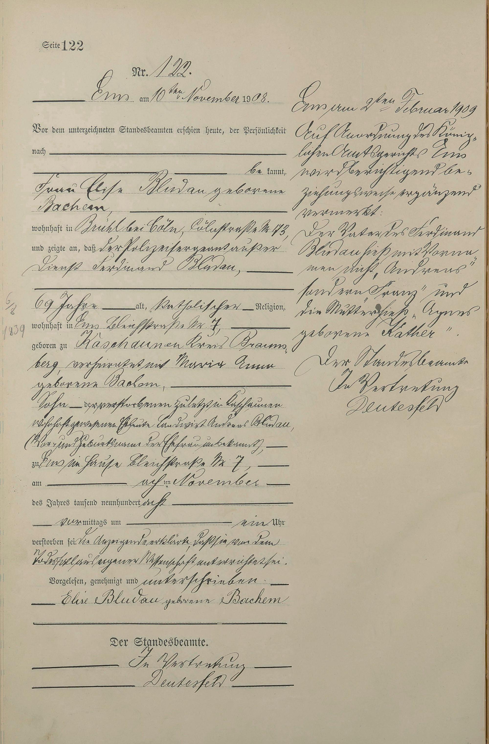 Sterberegister 1908