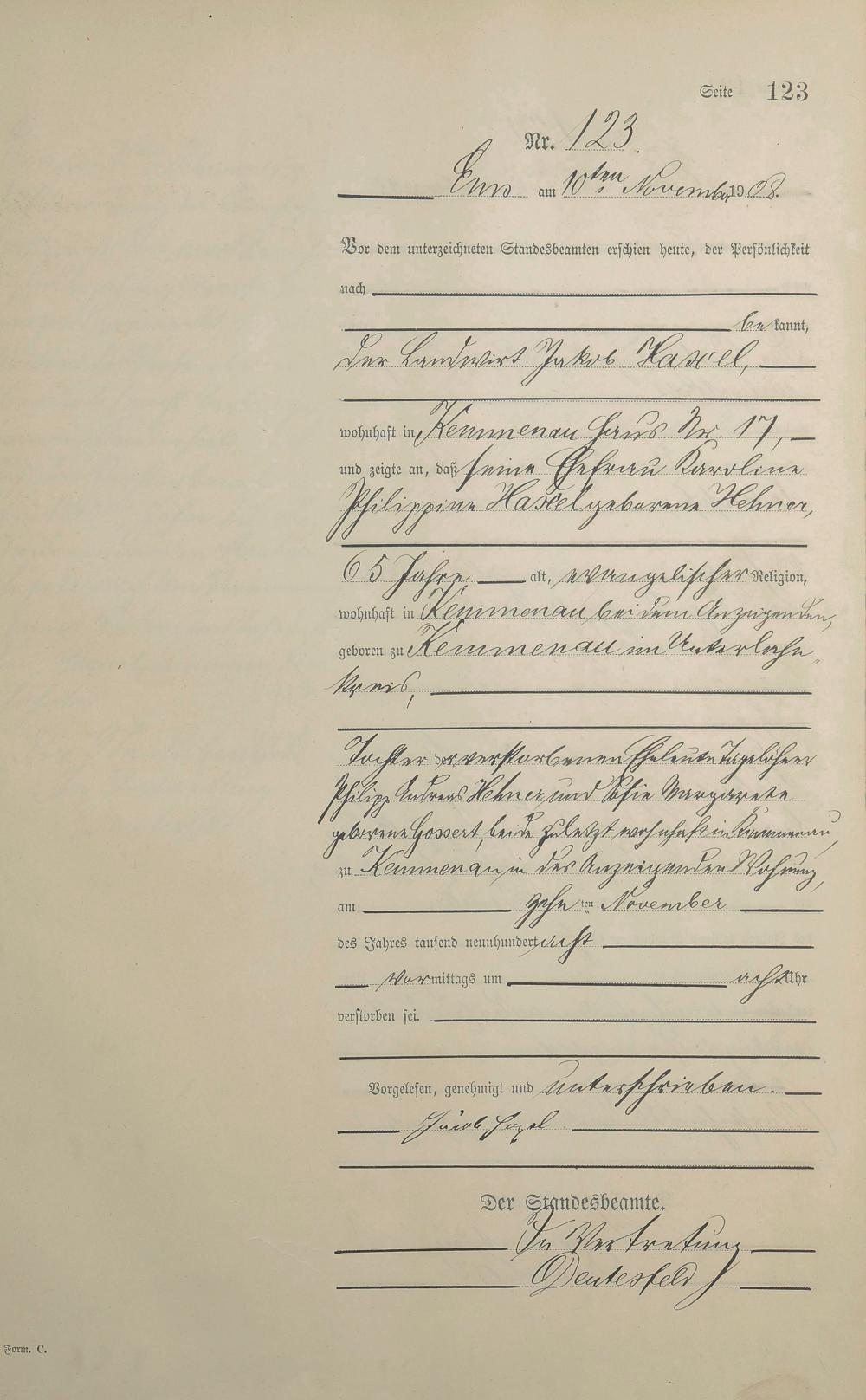 1484: Sterberegister 1908