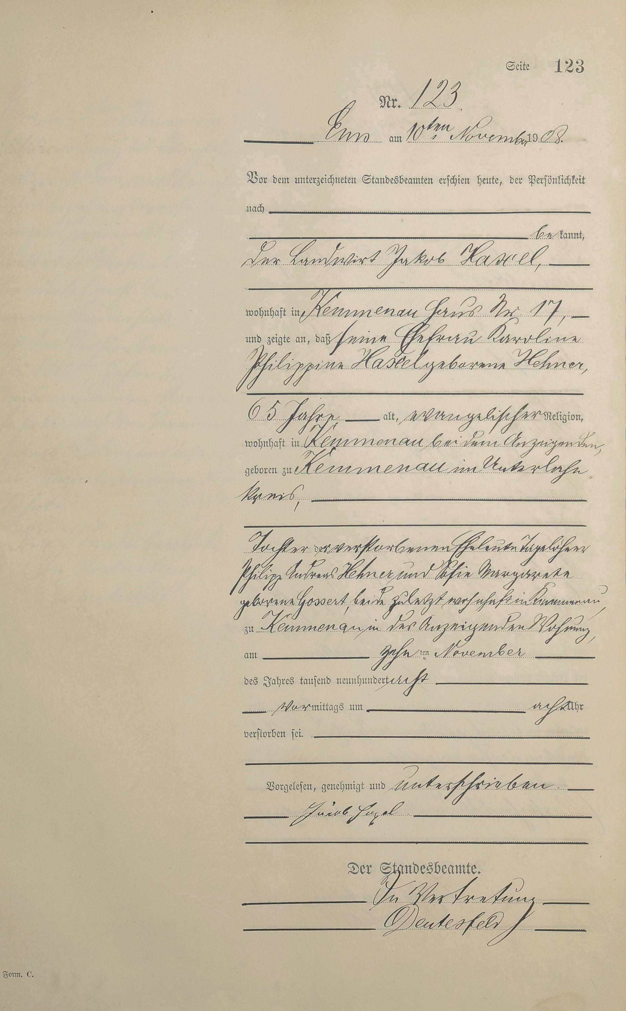 Sterberegister 1908