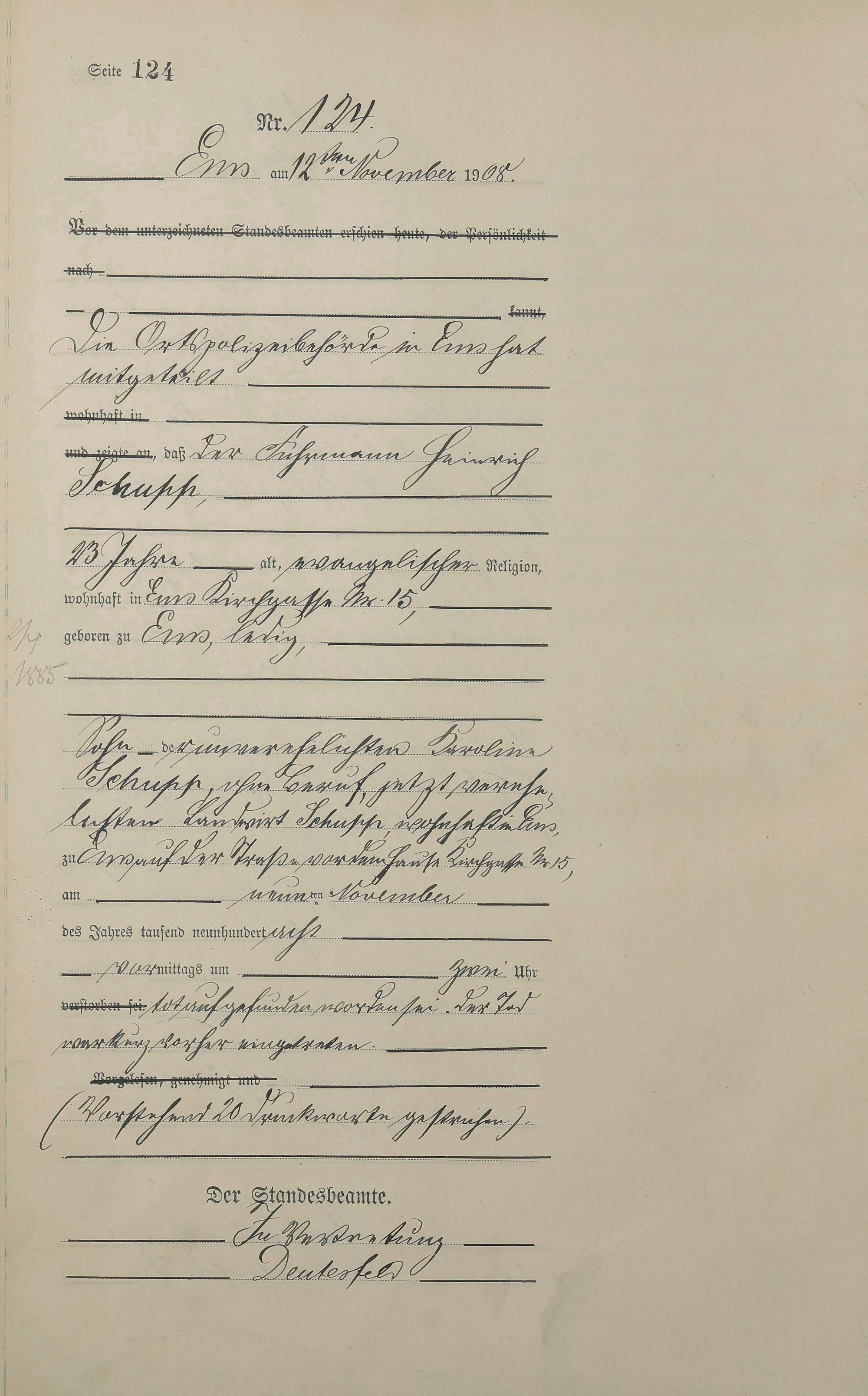 1484: Sterberegister 1908
