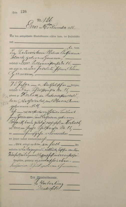 1484: Sterberegister 1908