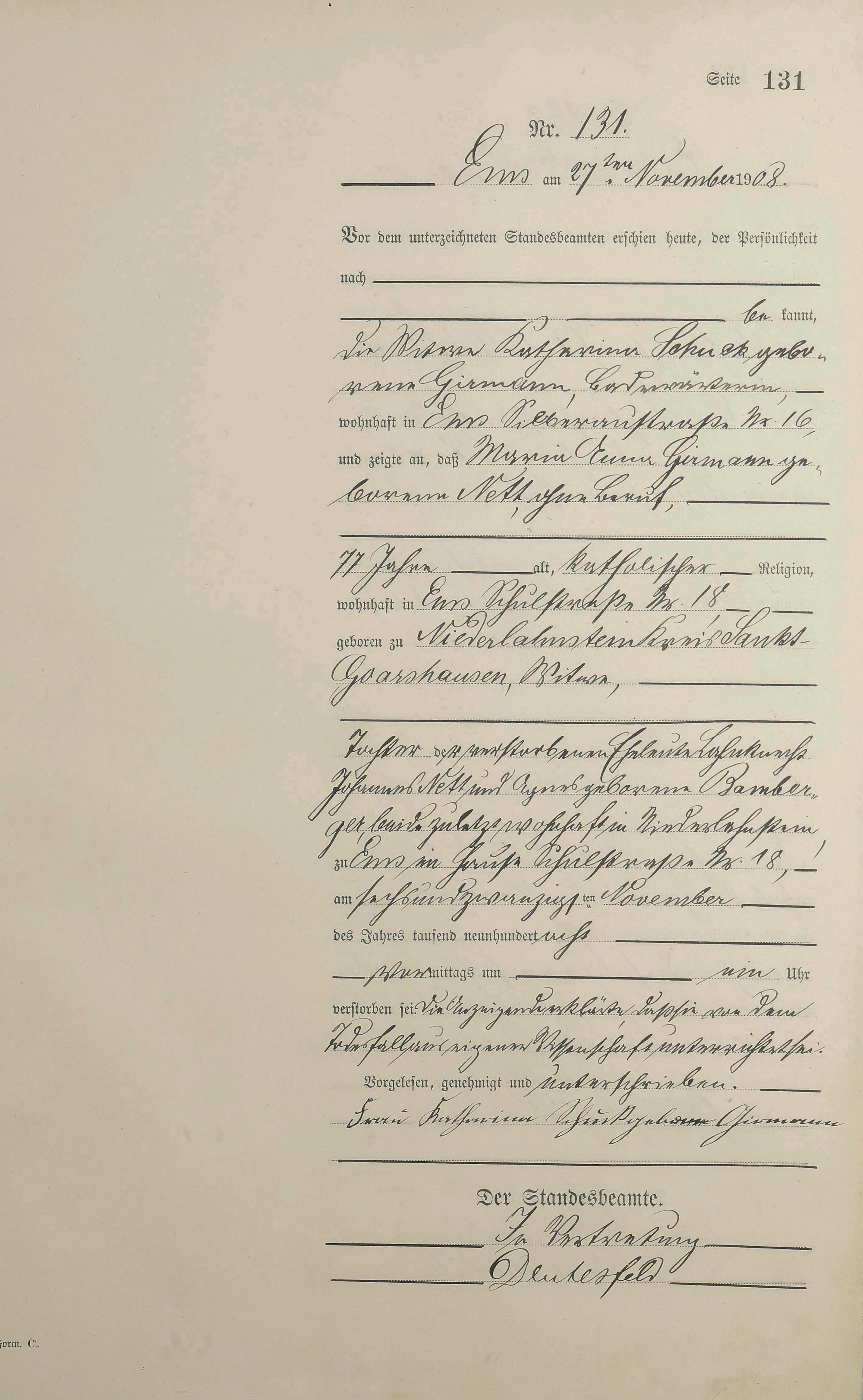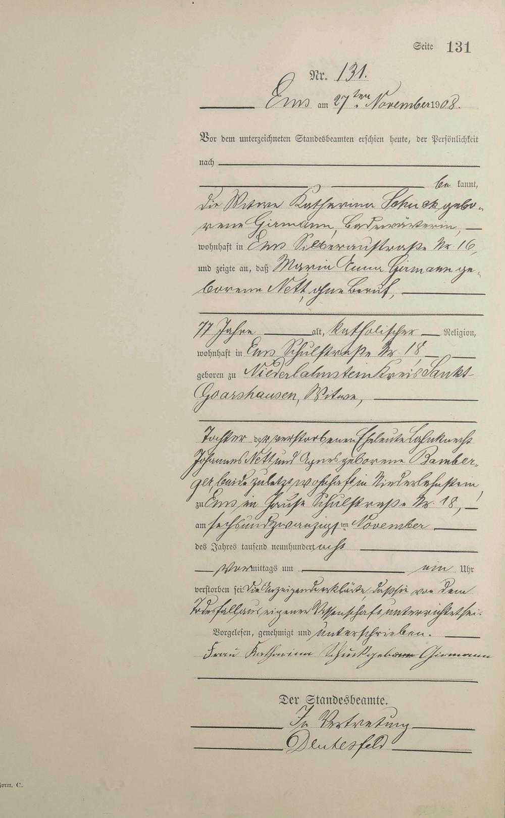 1484: Sterberegister 1908
