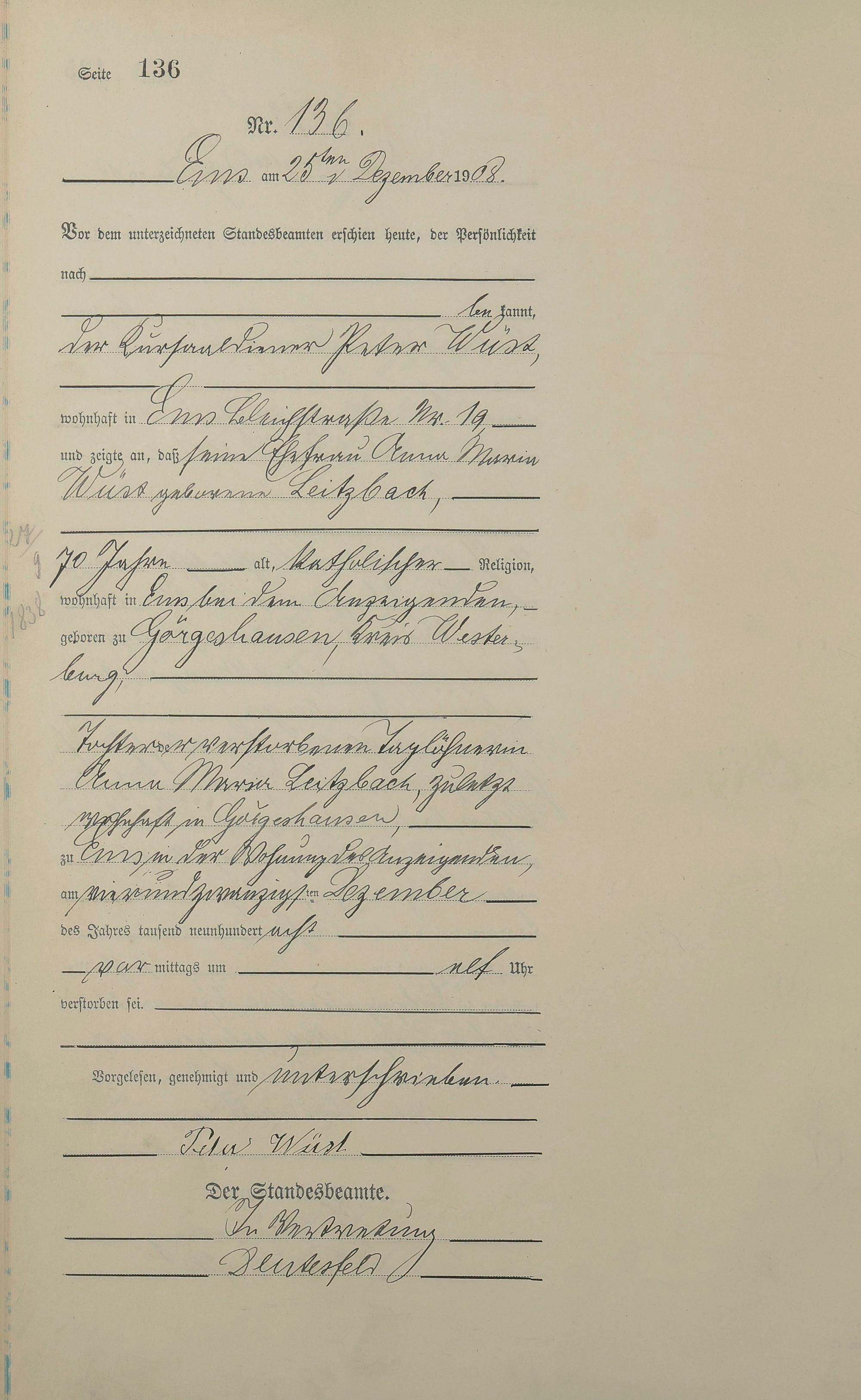 1484: Sterberegister 1908
